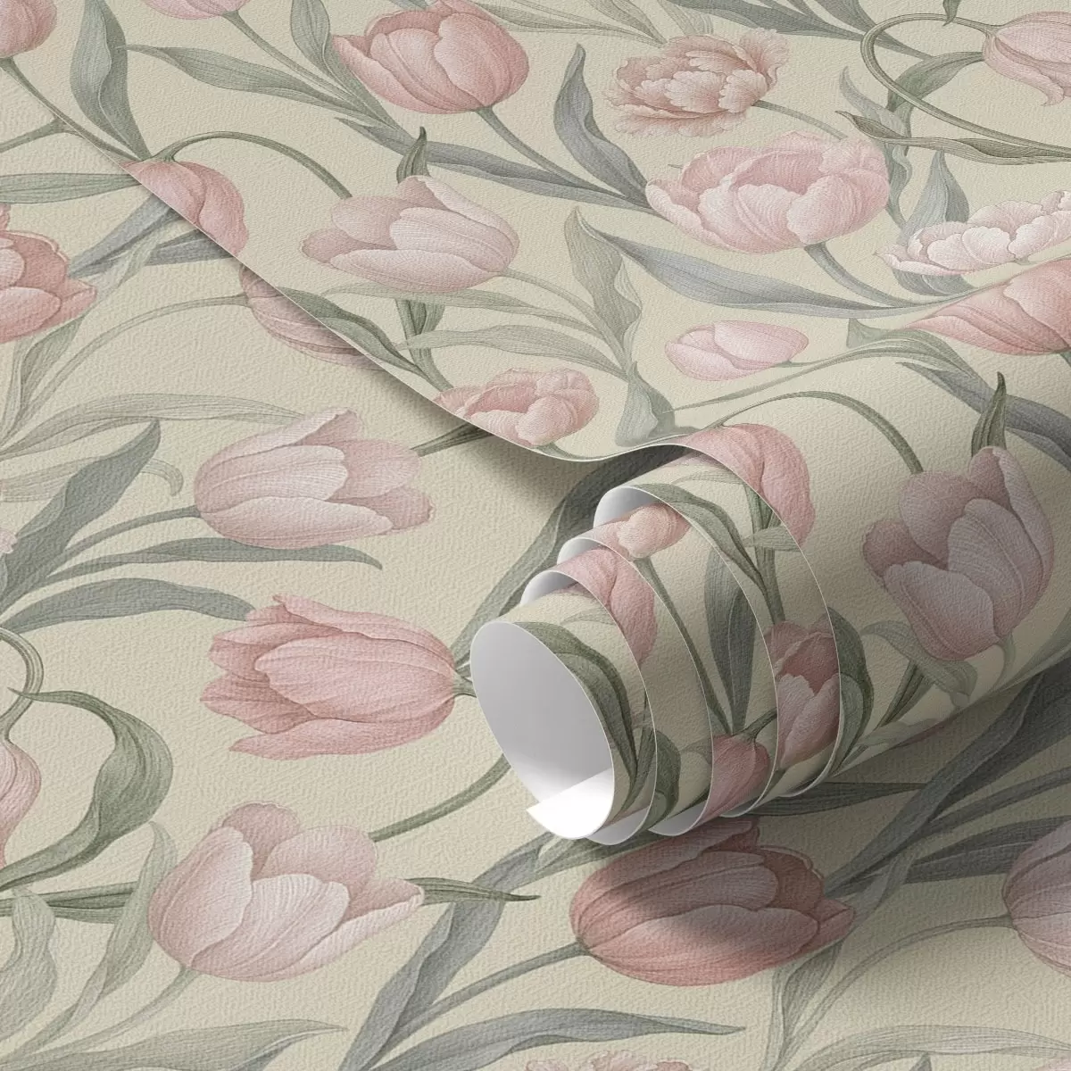 Carta da parati Tulipani rosa tenue su un delicato sfondo beige Nr. a00589