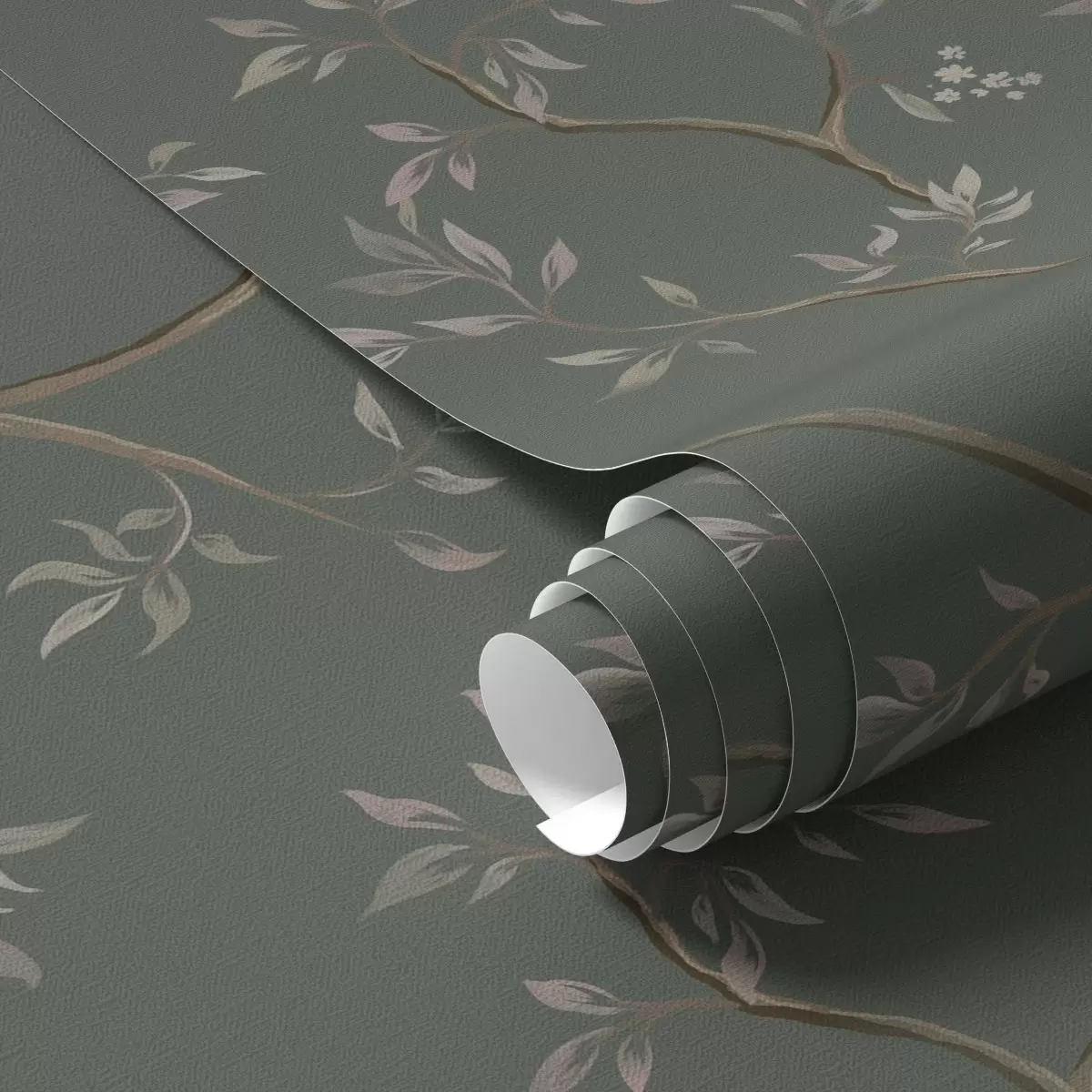 Carta da parati Delicati rami frondosi su sfondo verde scuro Nr. a00597