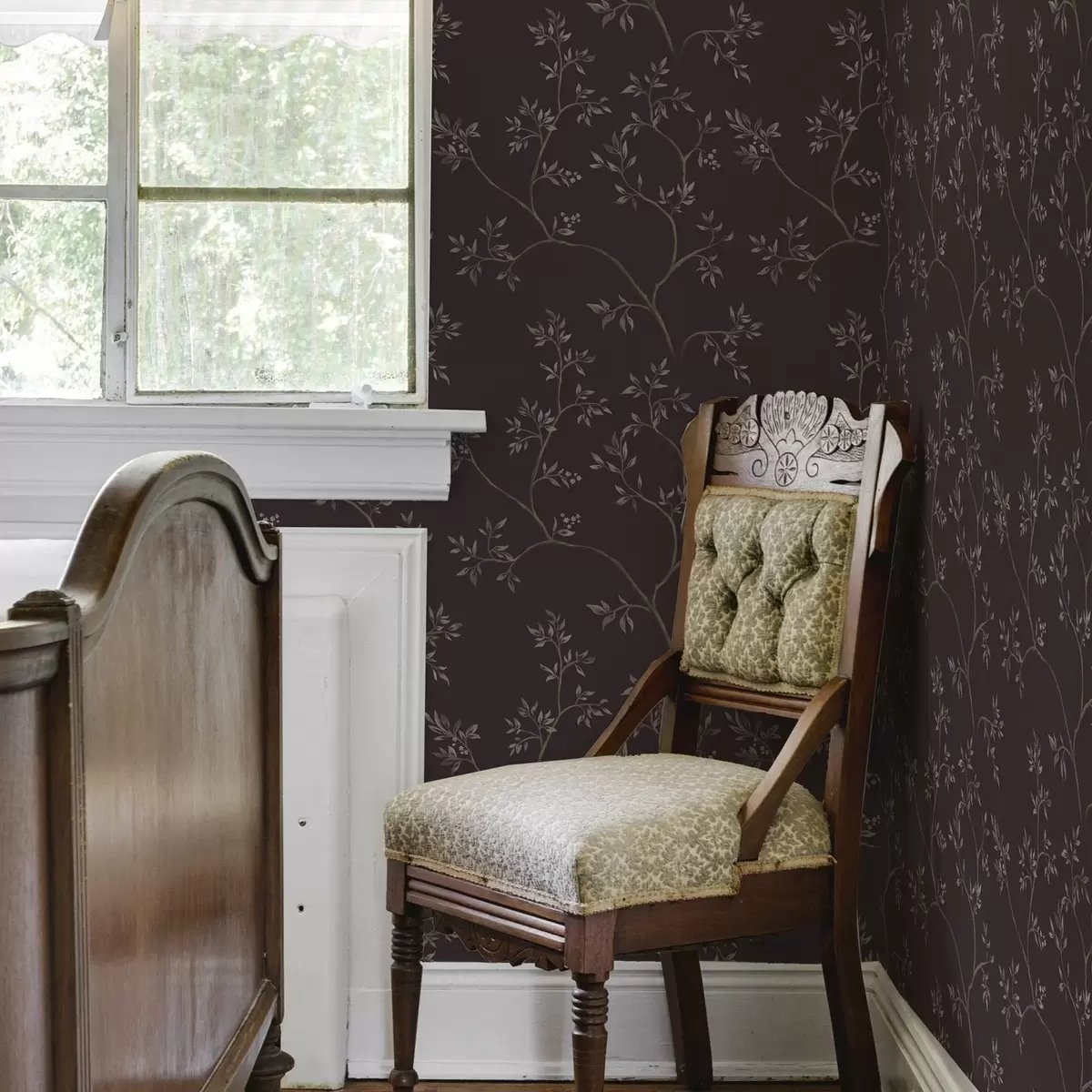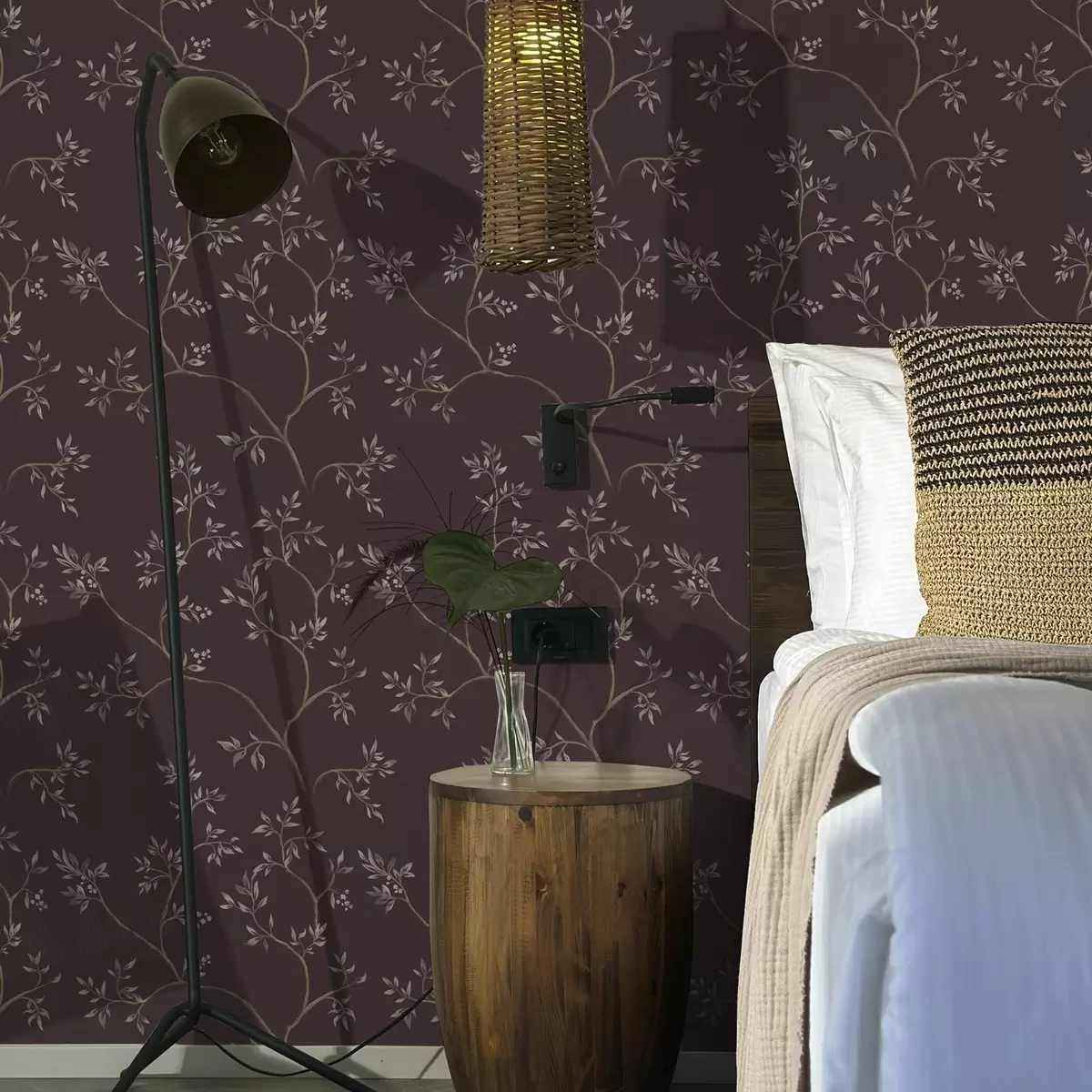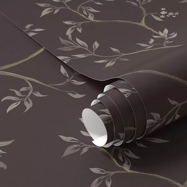 Carta da parati Delicati rami frondosi su un ricco sfondo color prugna Nr. a00597v2