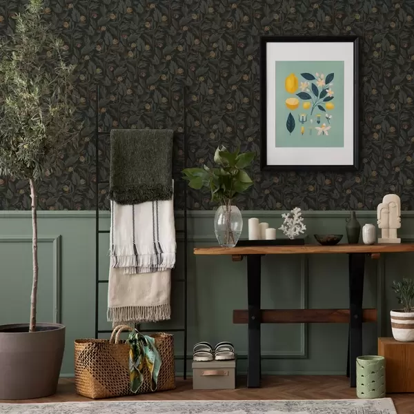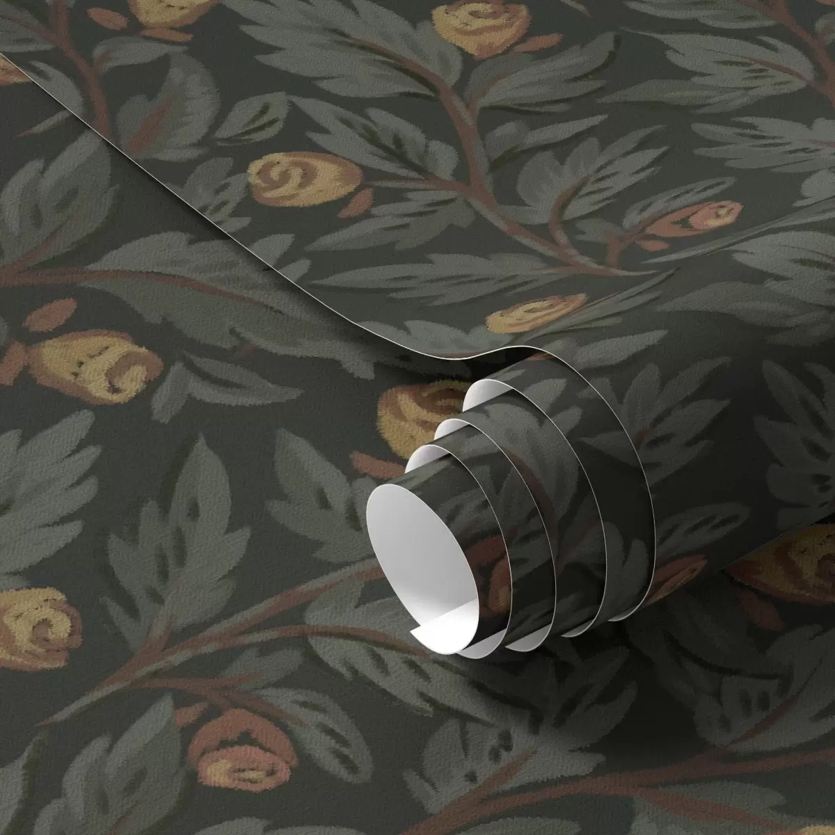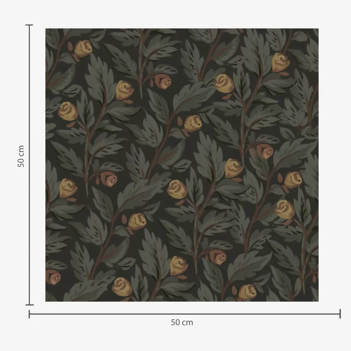Carta da parati Motivo floreale scuro con boccioli e foglie gialli Nr. a00598