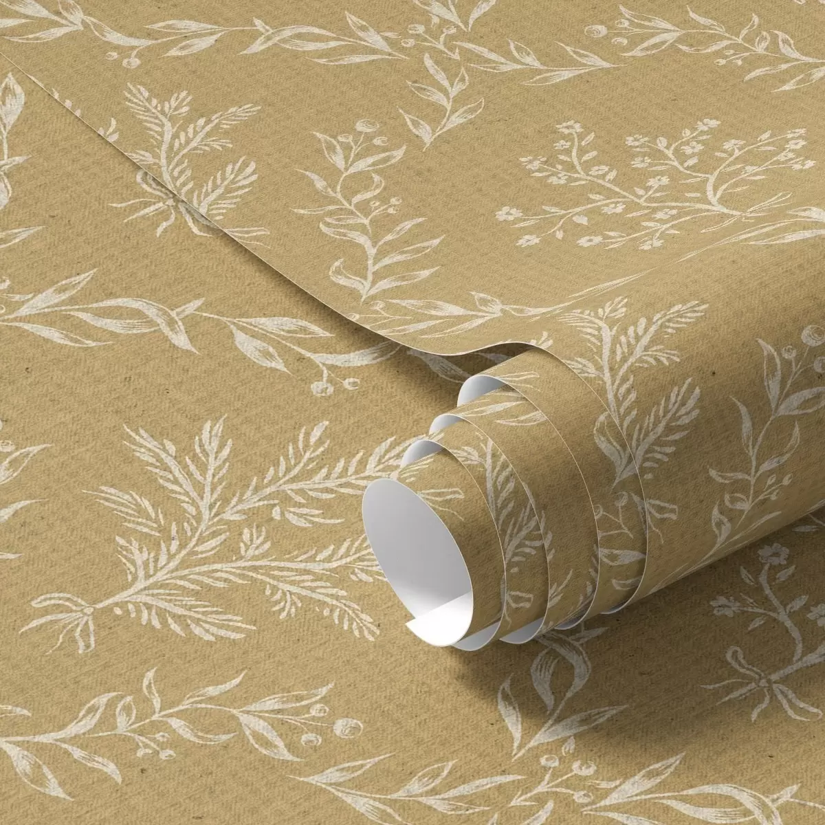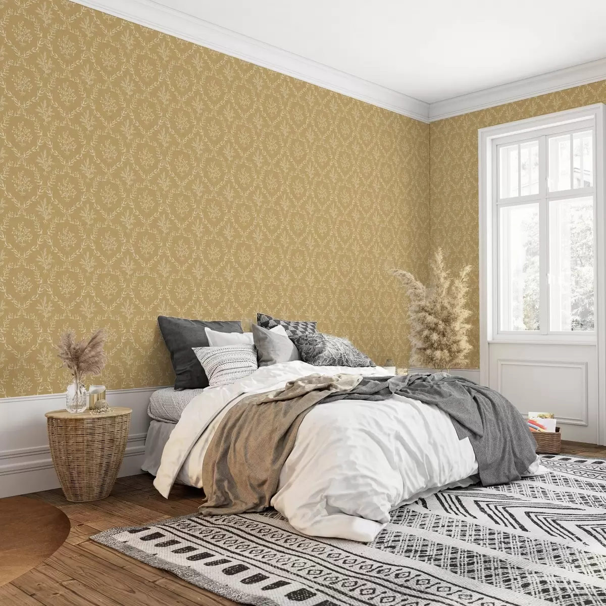 Carta da parati Ghirlande bianche di erbe e fiori su sfondo senape Nr. a00599