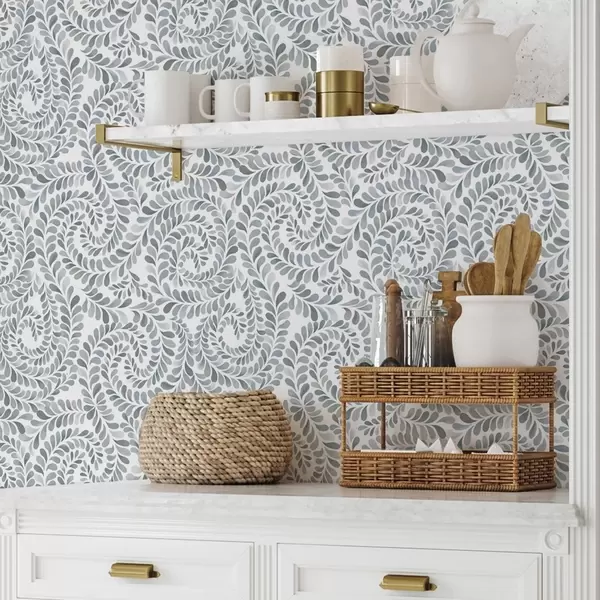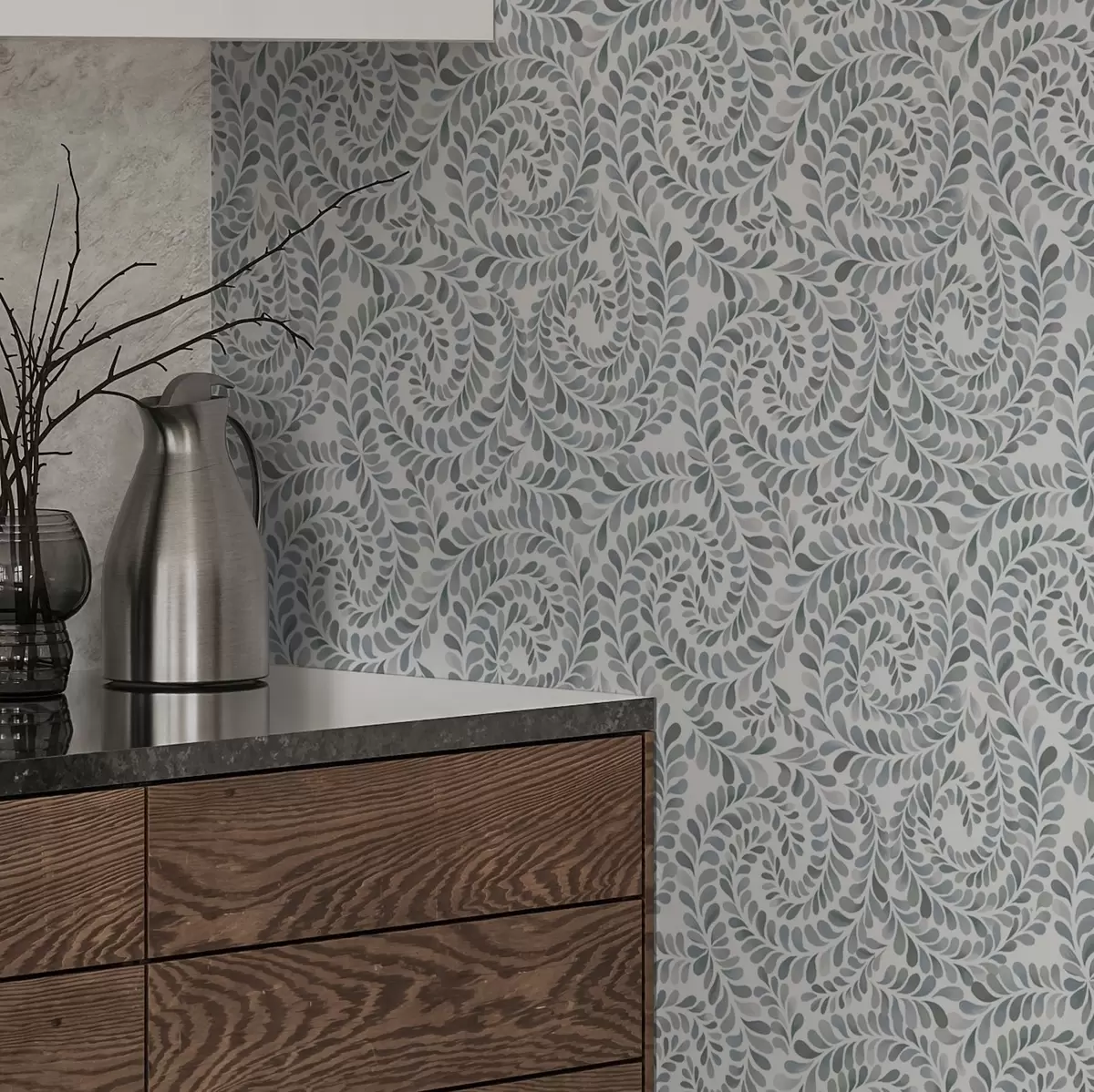 Carta da parati Spirali fogliari nei toni freddi del grigio-blu Nr. a00602v1