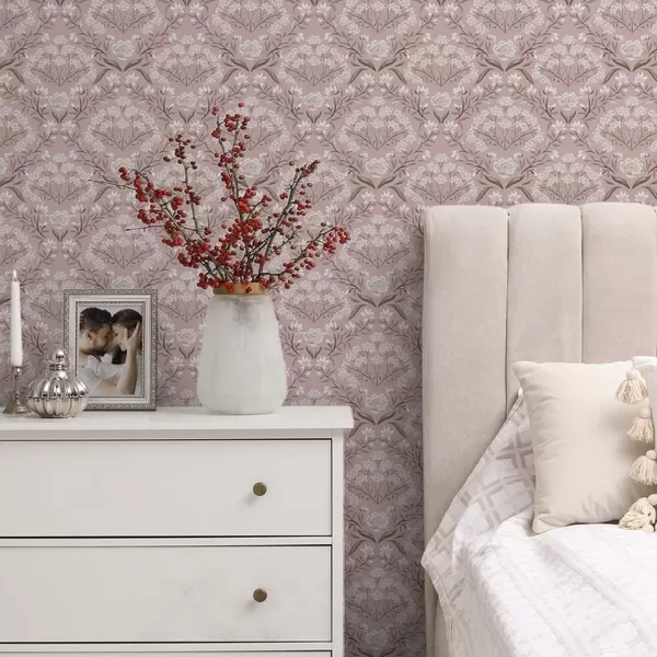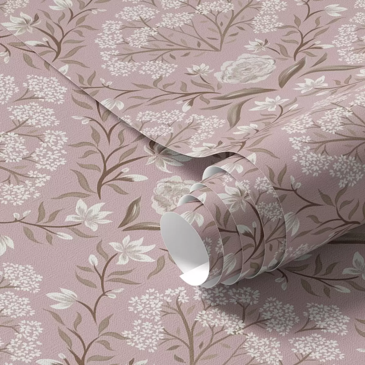 Carta da parati Damasco rosa: peonie, bucaneve e grappoli di pizzo Nr. a00603