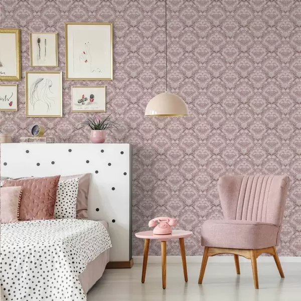 Carta da parati Damasco rosa: peonie, bucaneve e grappoli di pizzo Nr. a00603