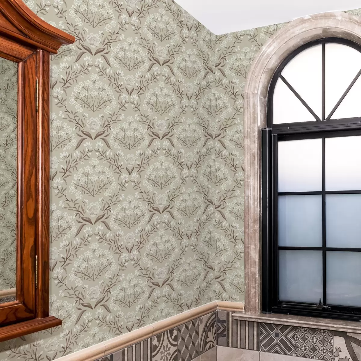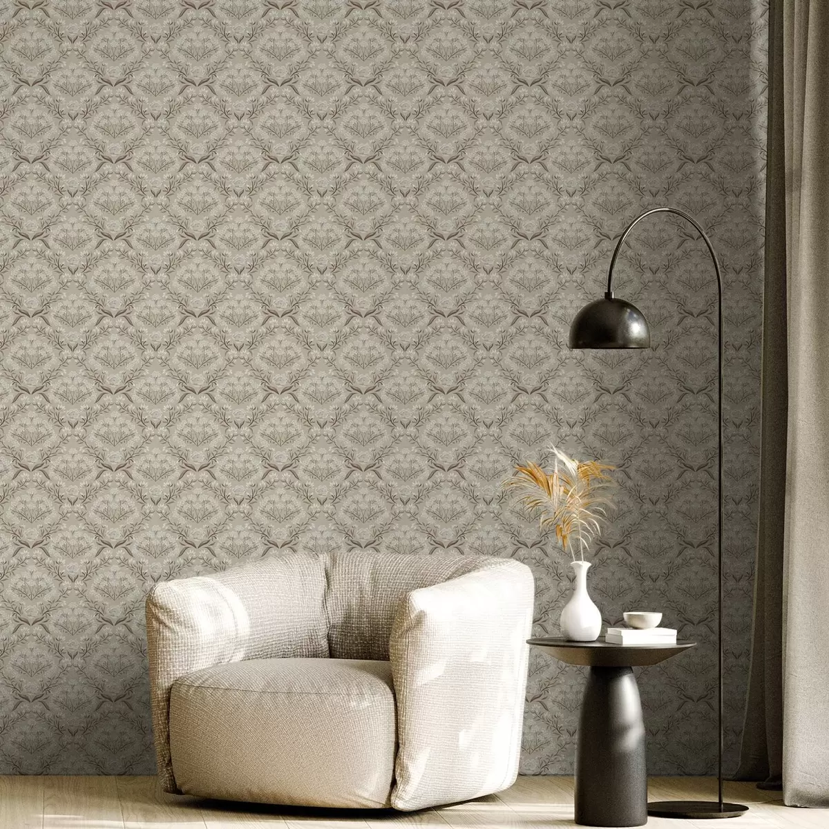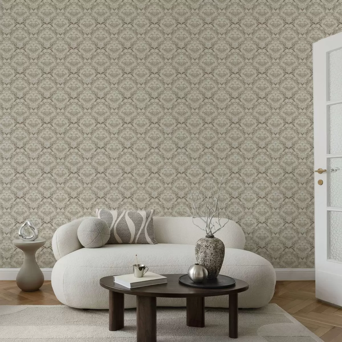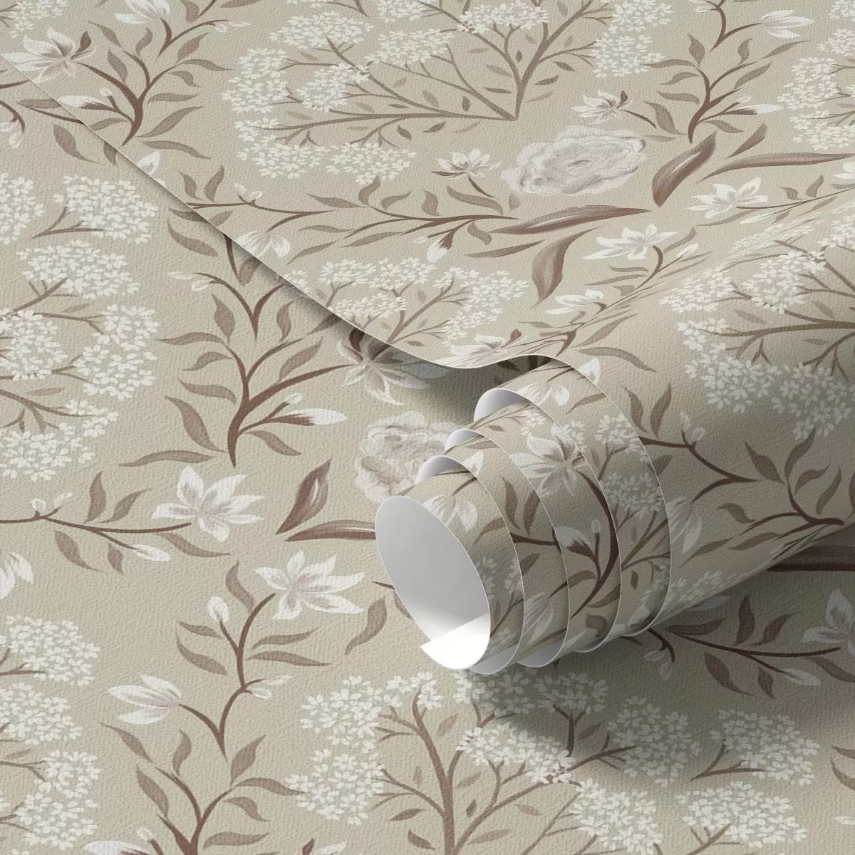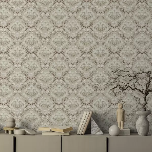 Carta da parati Damasco beige: peonie, bucaneve e grappoli di pizzo Nr. a00603v1