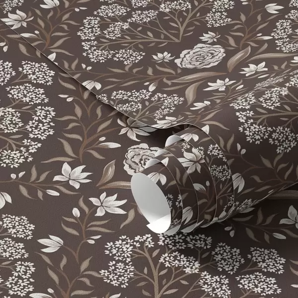 Carta da parati Cioccolato fondente damascato con peonie e bucaneve Nr. a00603v2