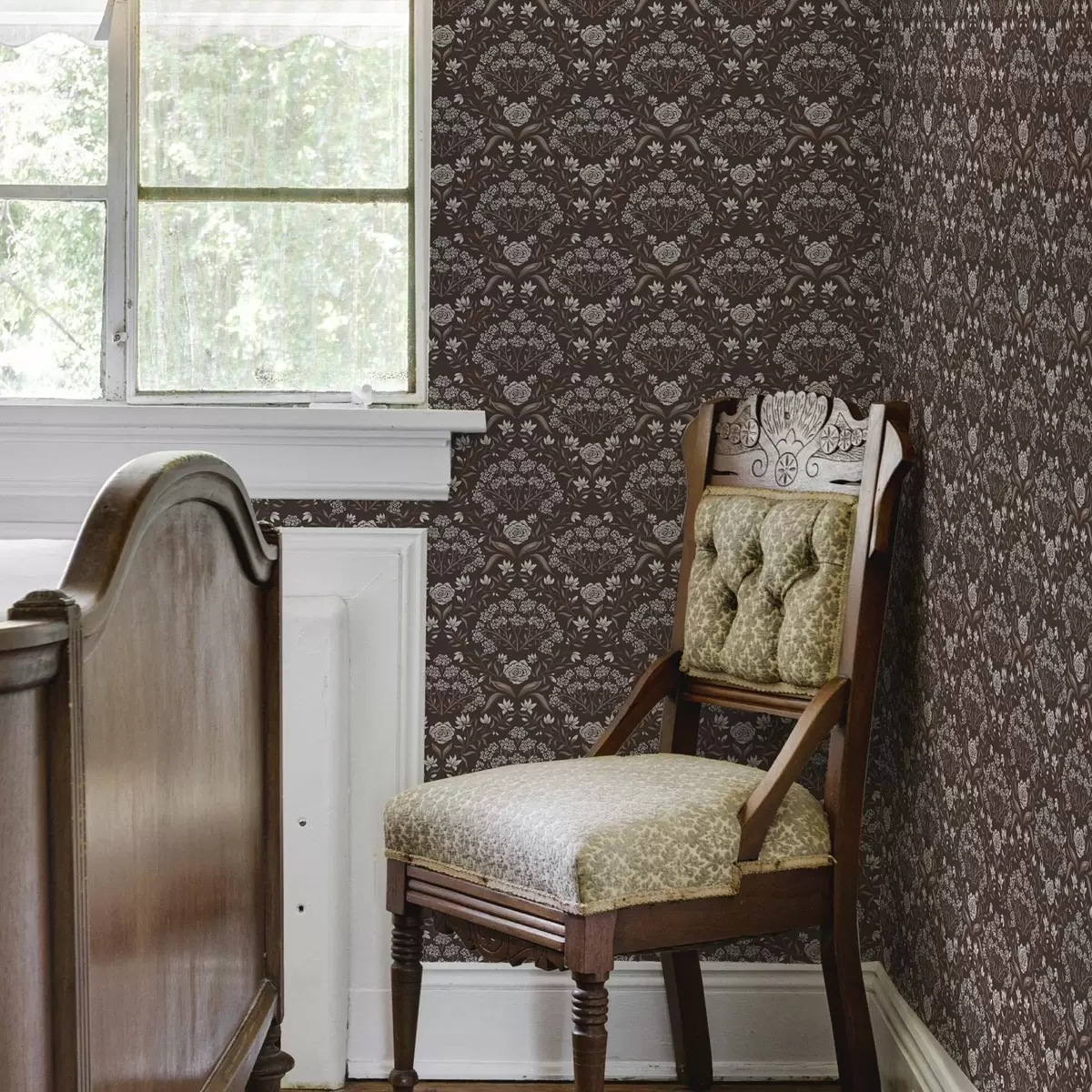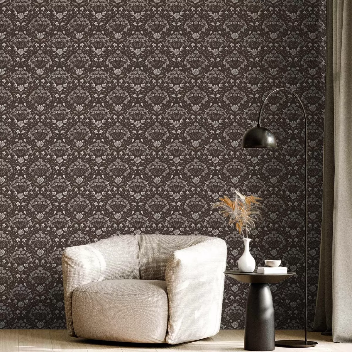 Carta da parati Cioccolato fondente damascato con peonie e bucaneve Nr. a00603v2