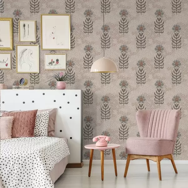 Carta da parati Fiori e semi stilizzati su beige caldo Nr. a00604