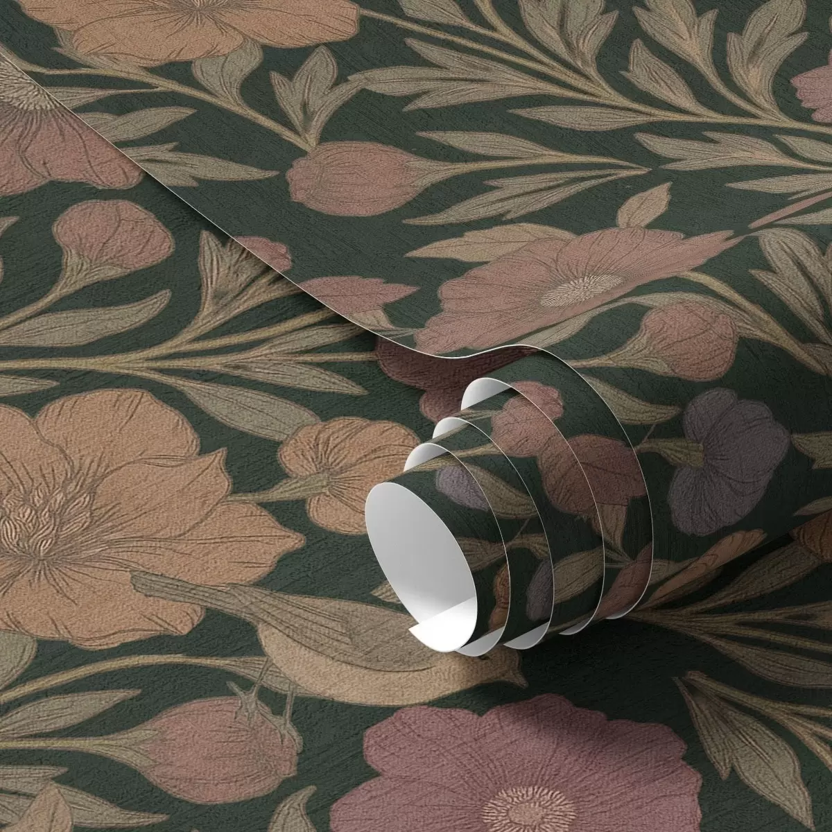 Carta da parati Fiori autunnali e uccelli su sfondo verde smeraldo intenso Nr. a00605v1