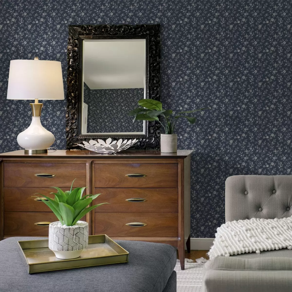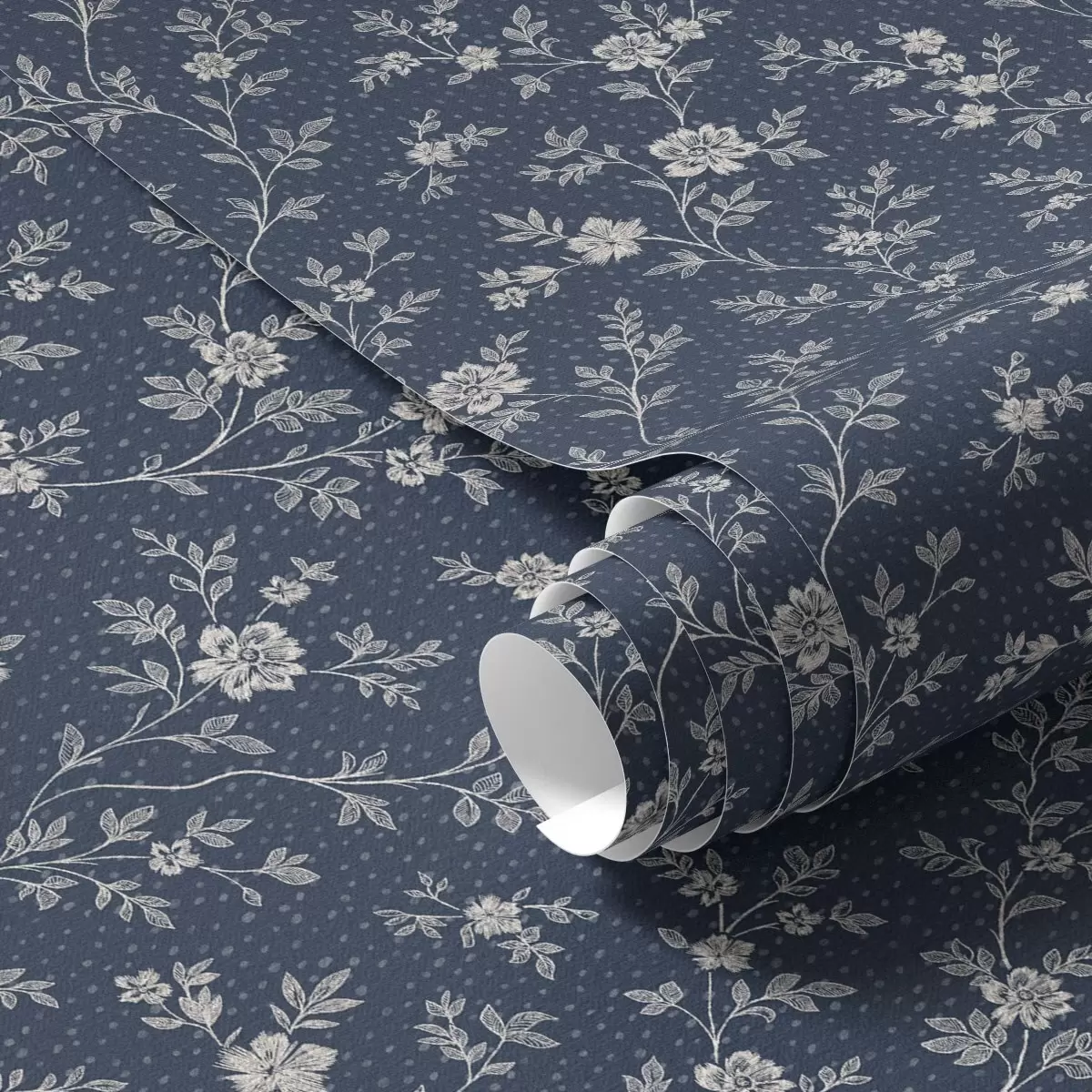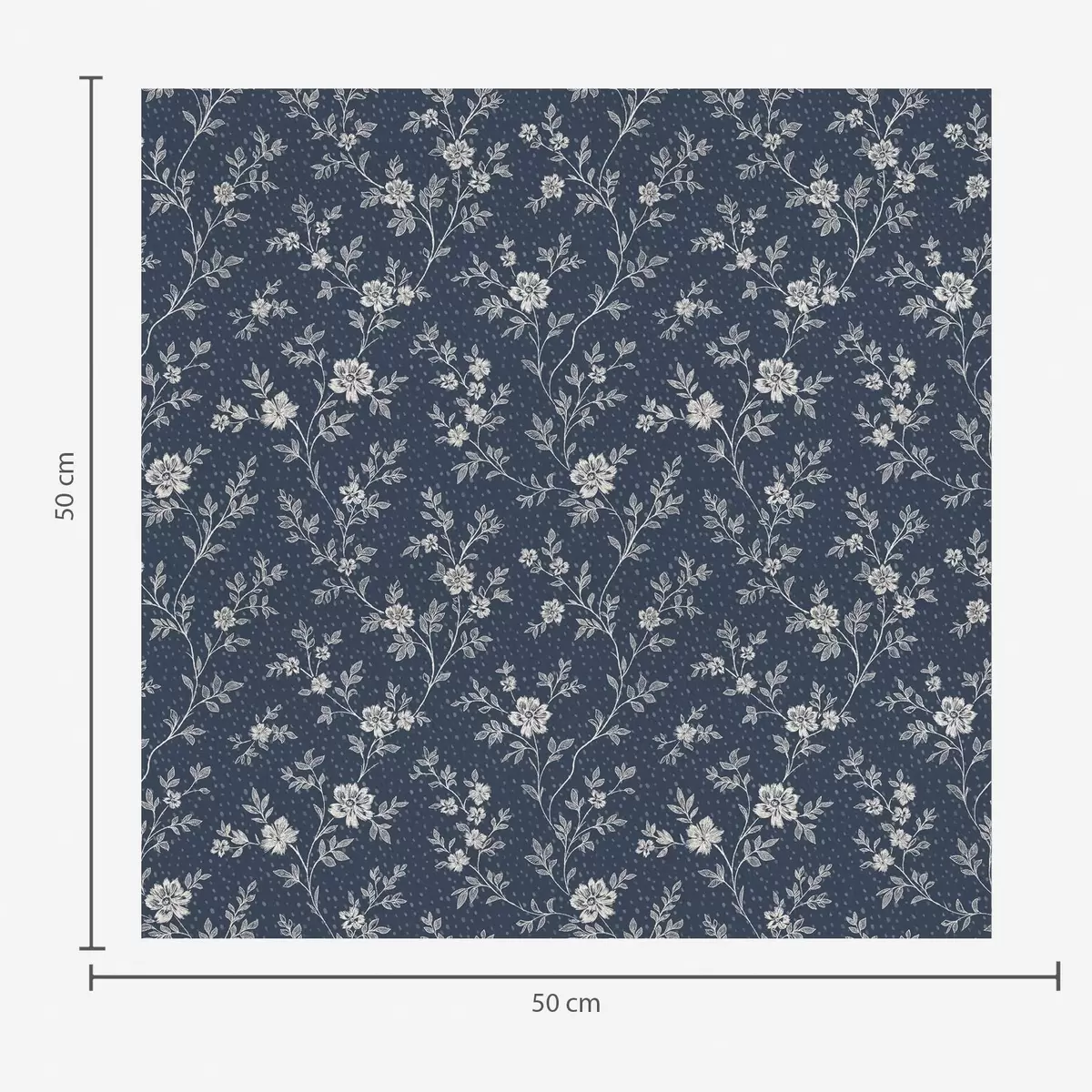 Carta da parati Sfondo blu scuro con sottili rami e fiori beige Nr. a00612