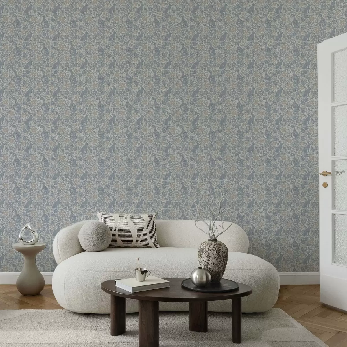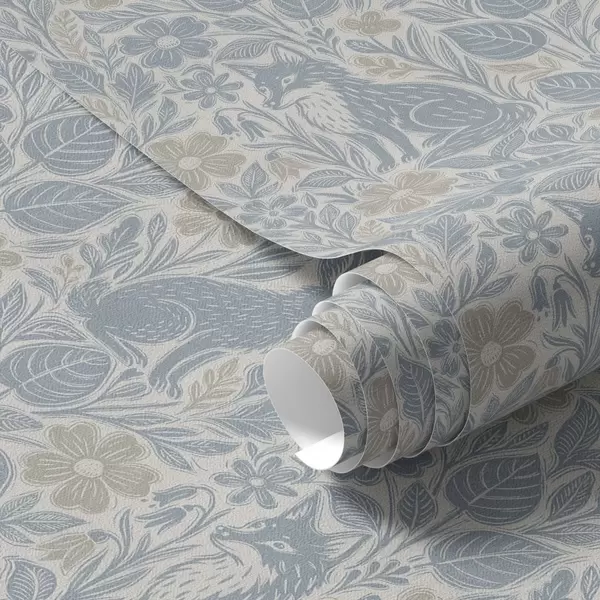 Carta da parati Animali e fiori della foresta: volpe e lepre nei toni del blu Nr. a00613