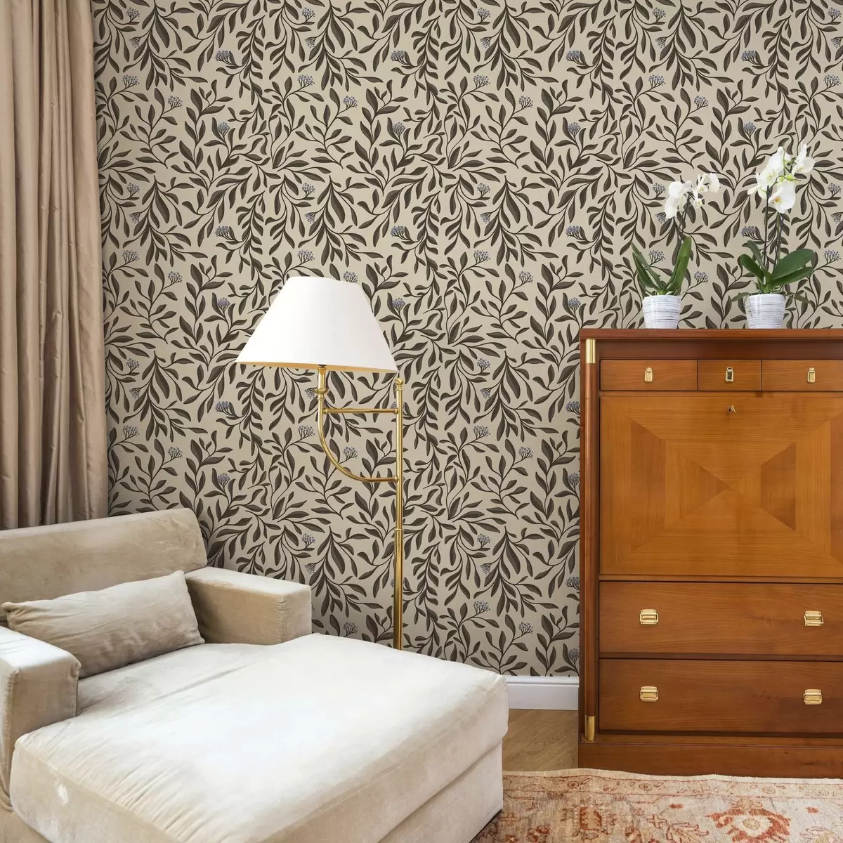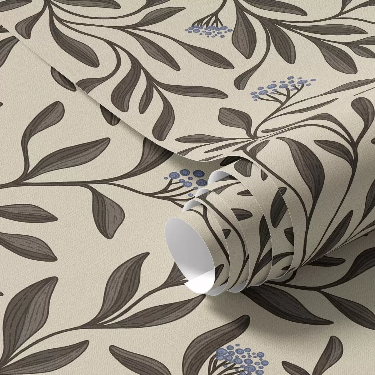 Carta da parati Rami di cioccolato con bacche blu su uno sfondo caldo Nr. a00615
