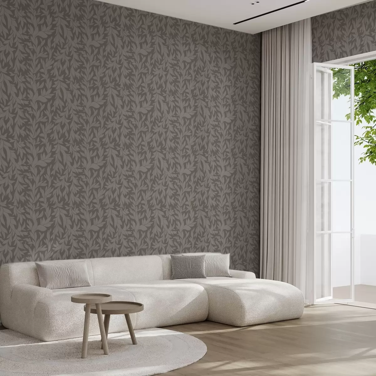 Carta da parati Sfondo oliva con foglie lilla, trama lineare Nr. a00616v1