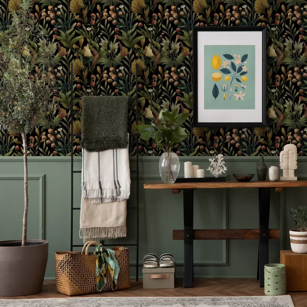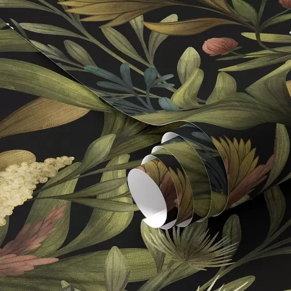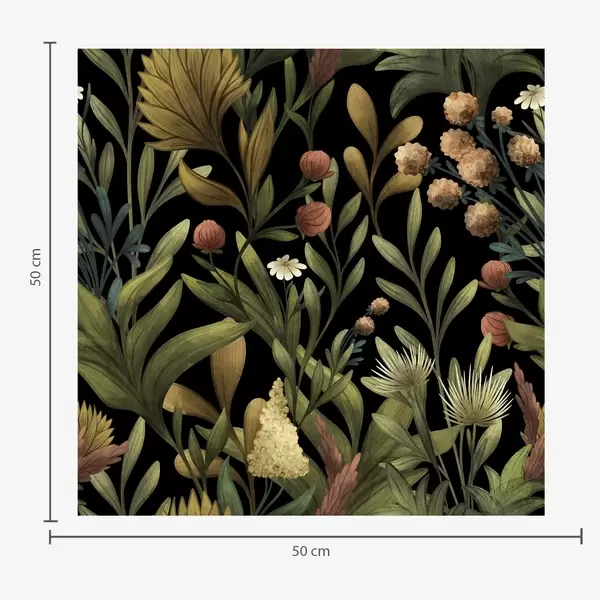 Carta da parati Giardino botanico su sfondo nero, calda tavolozza autunnale Nr. a00619
