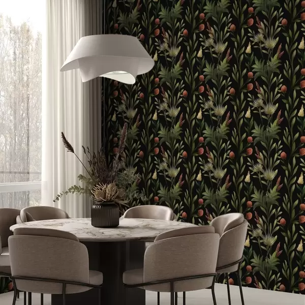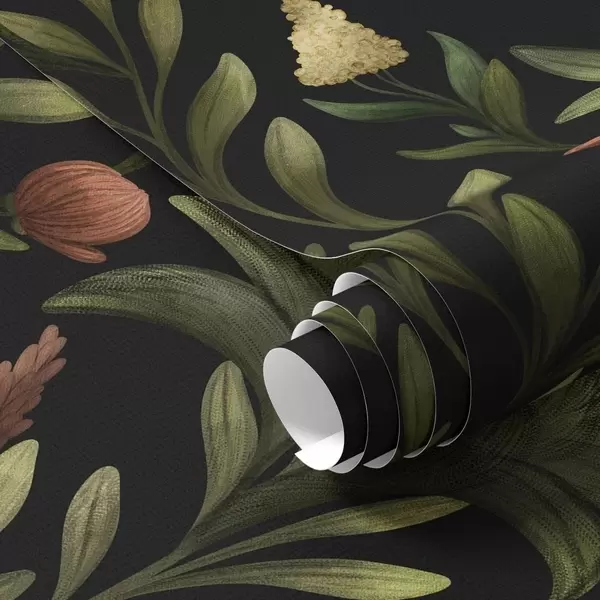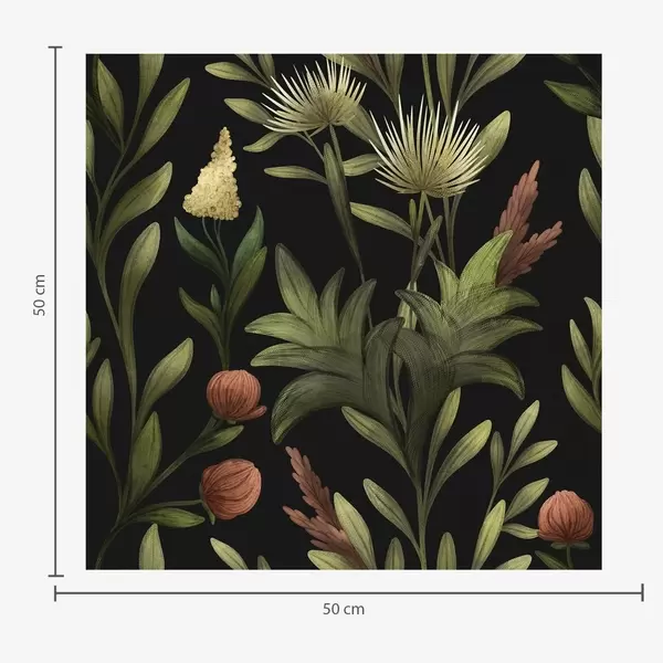 Carta da parati Erbe alte e fiori su sfondo nero, stampa dettagliata Nr. a00620