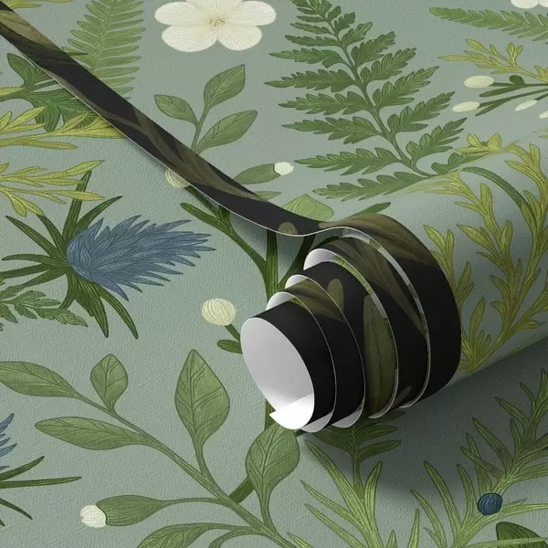 Carta da parati Erbe di bosco, cicoria e frutti di bosco su fondo di menta Nr. a00621v1