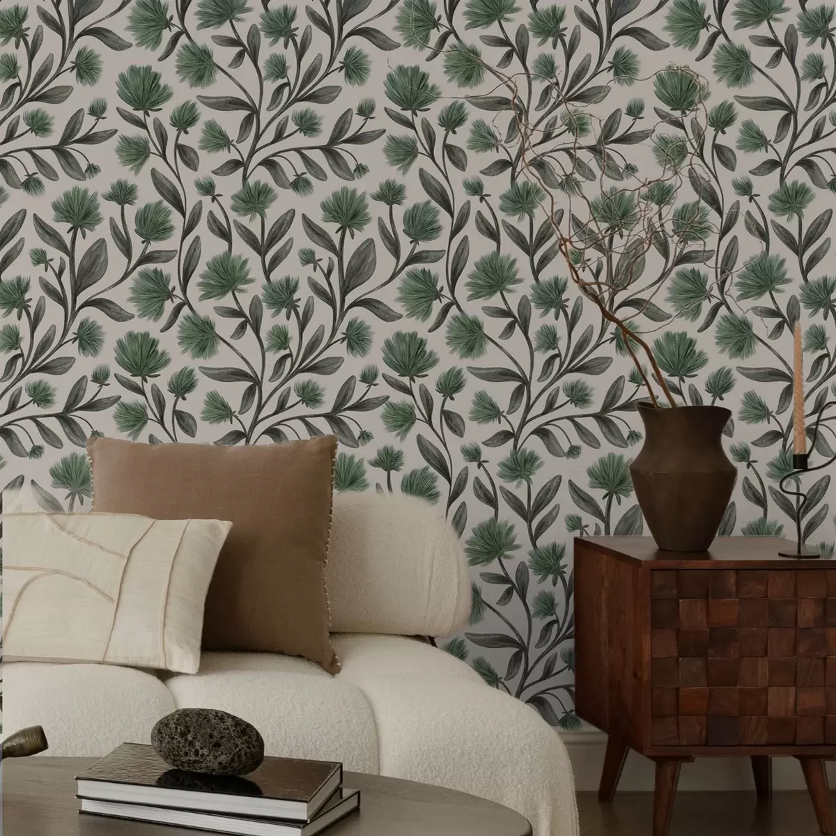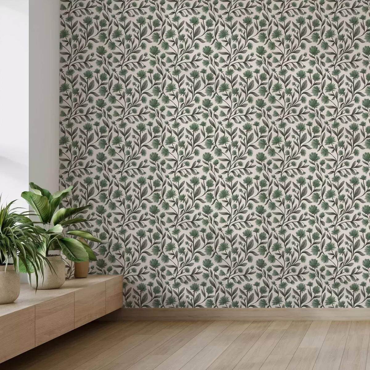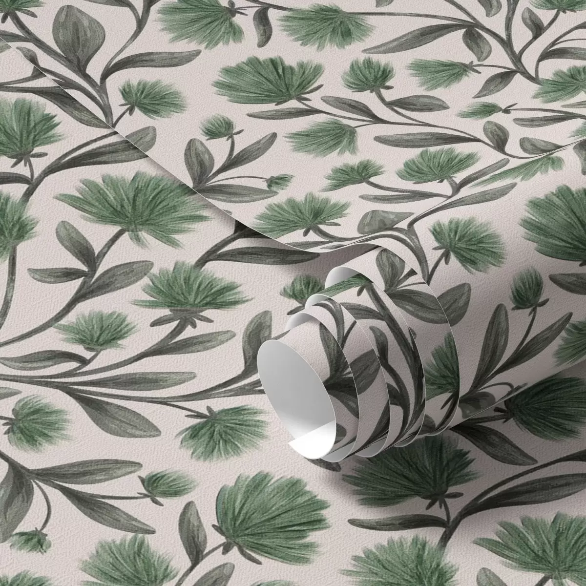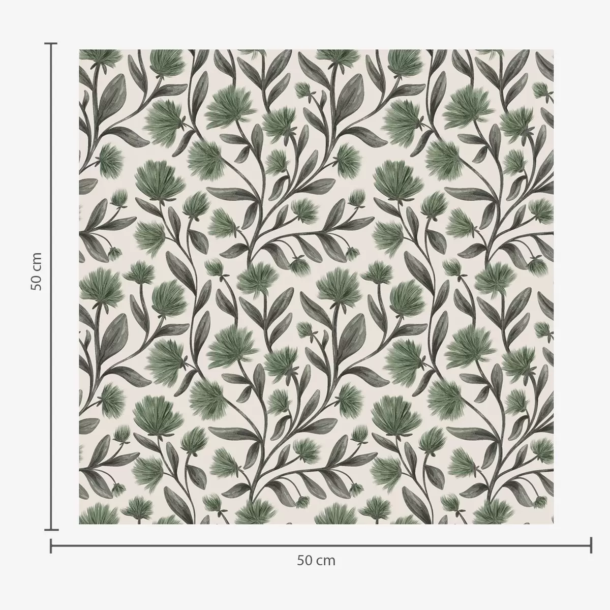Carta da parati Fiori selvatici in una tavolozza verde su sfondo color crema Nr. a00623v3
