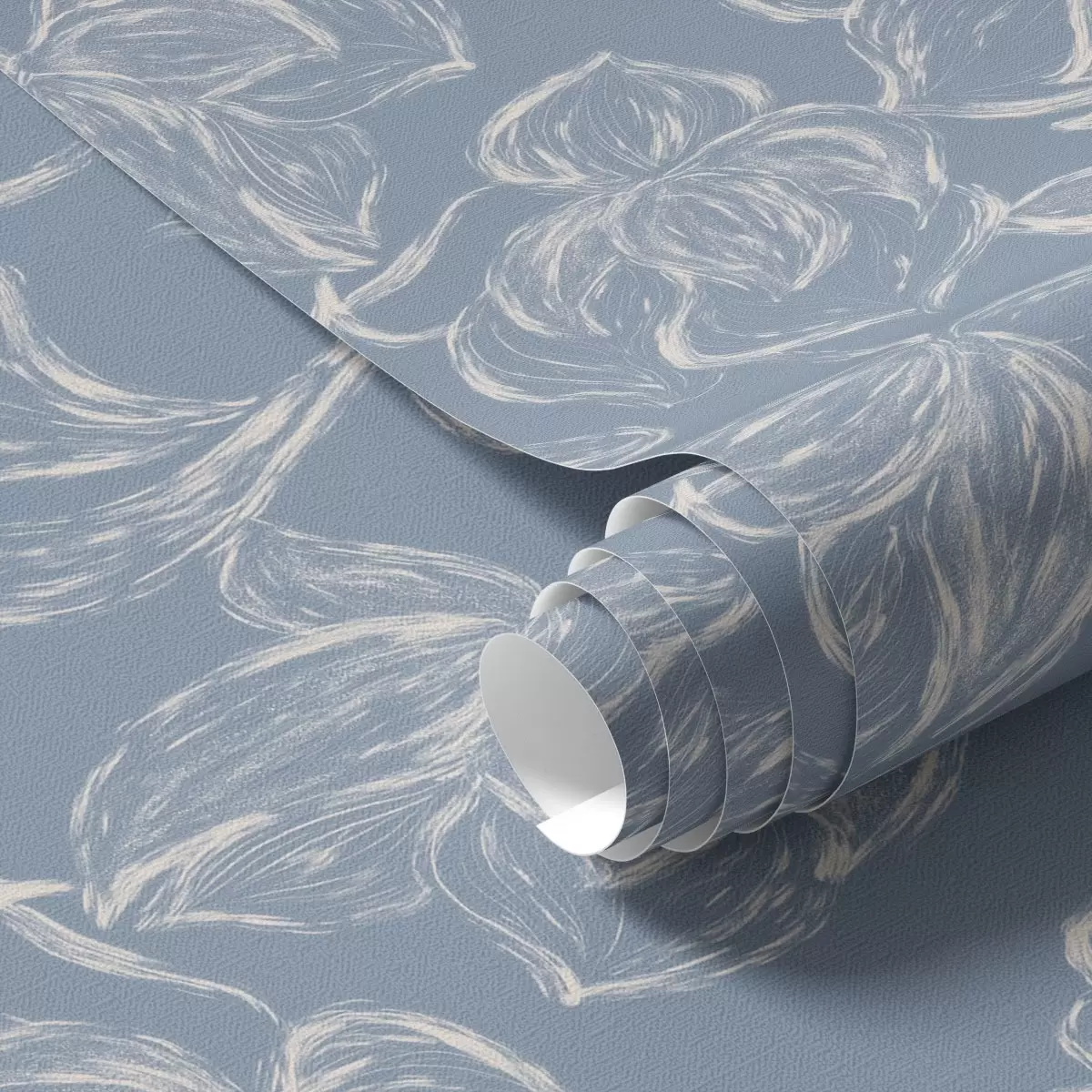 Carta da parati Sfondo azzurro con fiori dai contorni gessati Nr. a00625v3