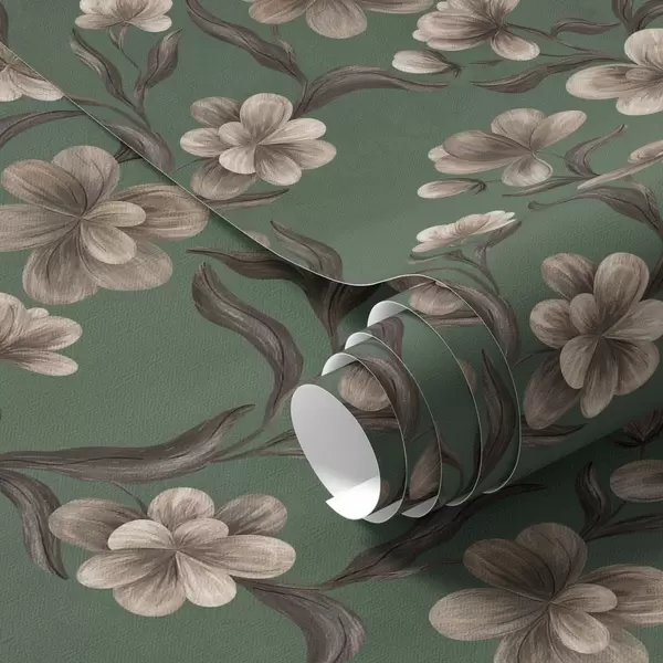 Carta da parati Fiori beige su uno sfondo verde intenso Nr. a00626v3