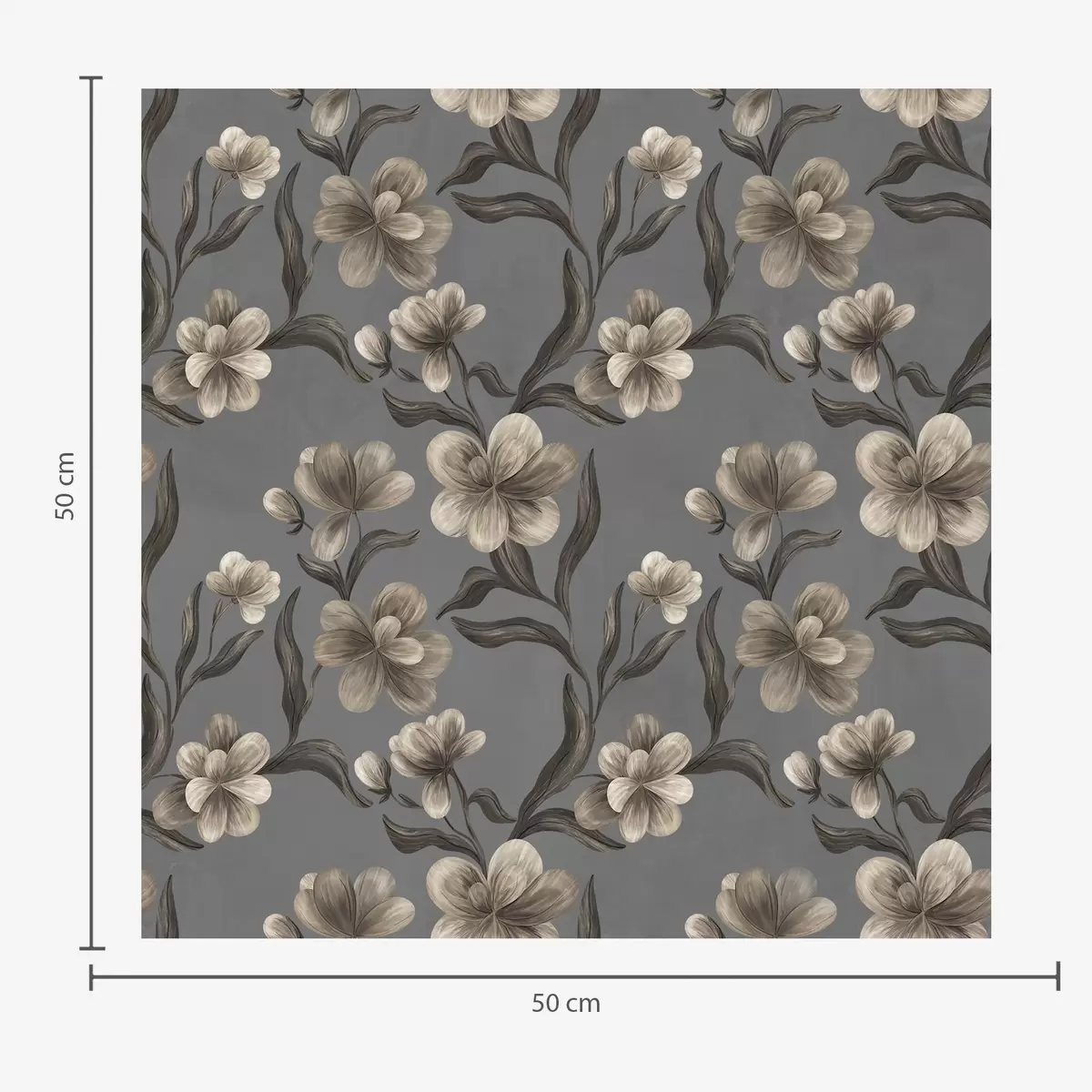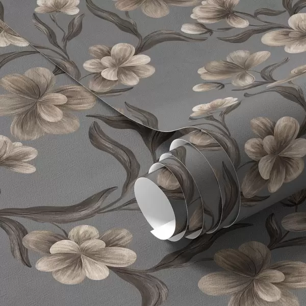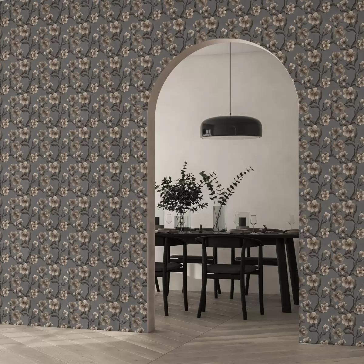 Carta da parati Fiori beige su sfondo grigio grafite Nr. a00626v4
