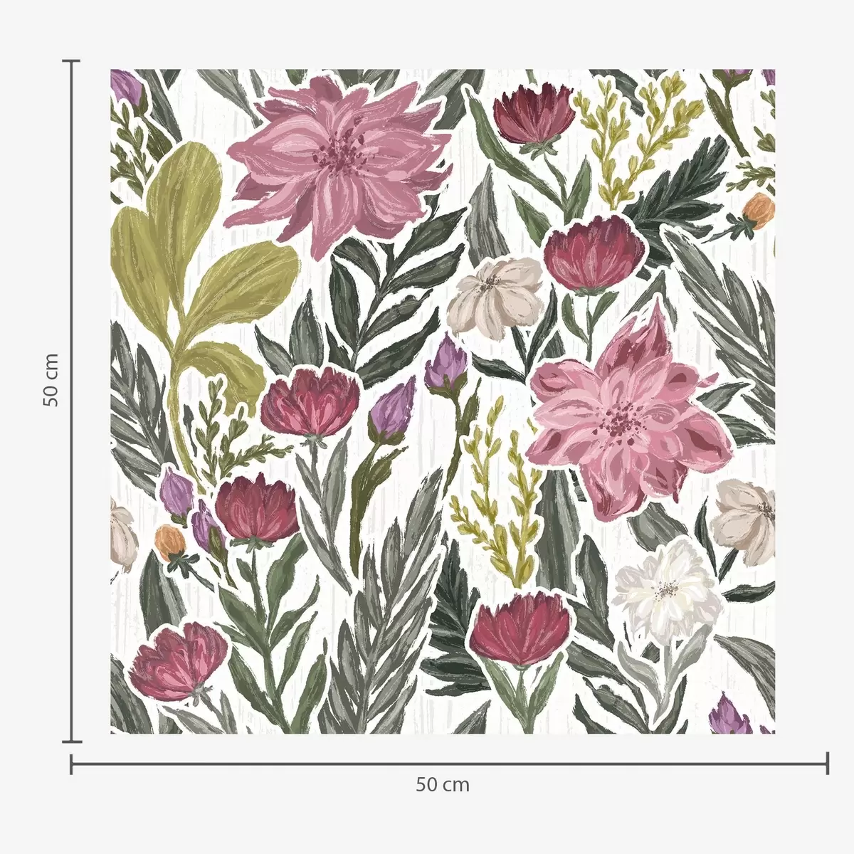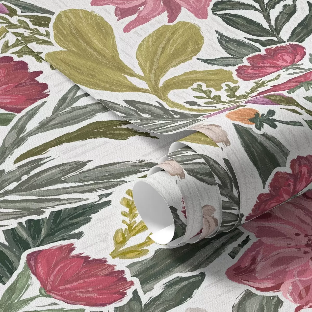 Carta da parati Fiori rosa intenso e crema su sfondo bianco, texture impastata Nr. a00629v1
