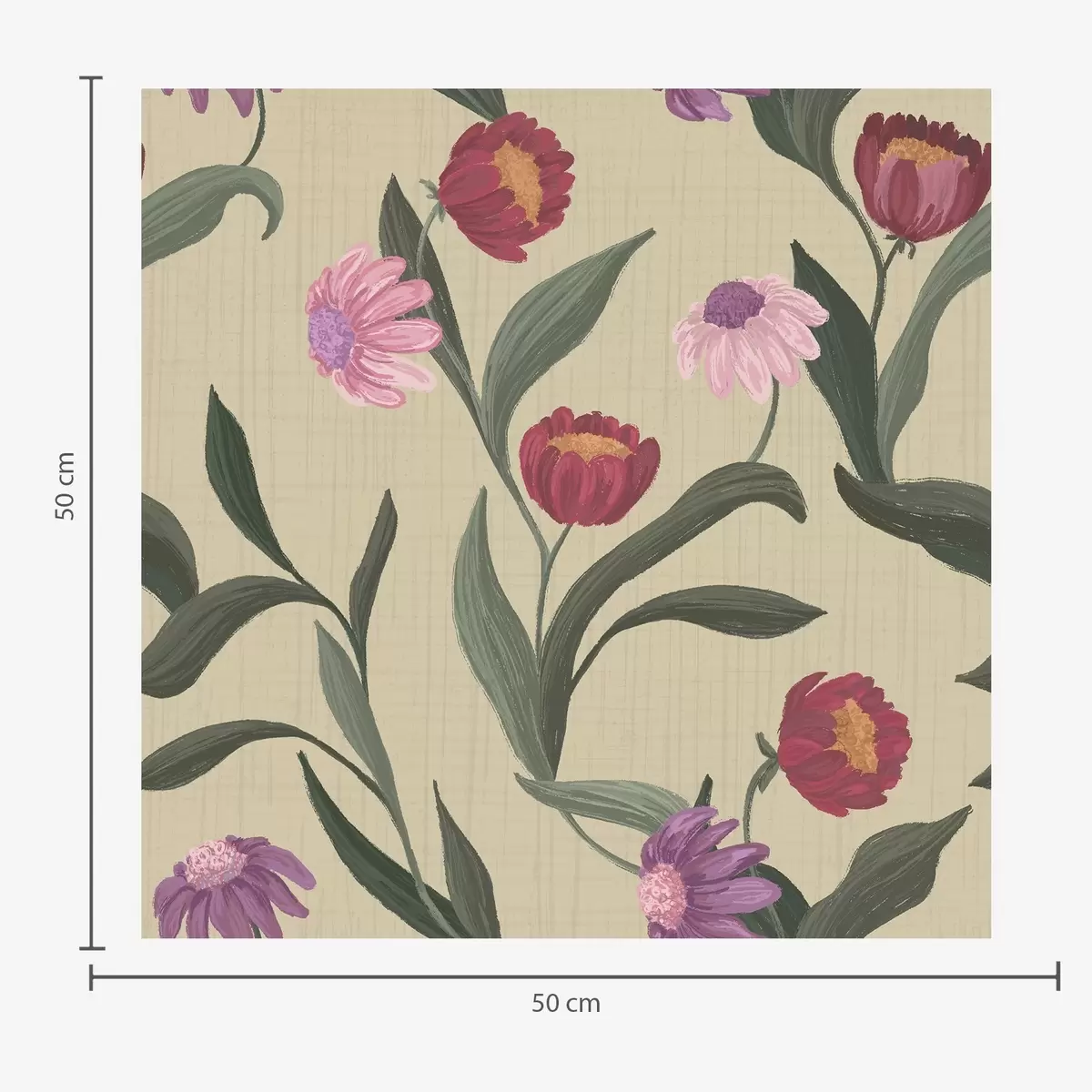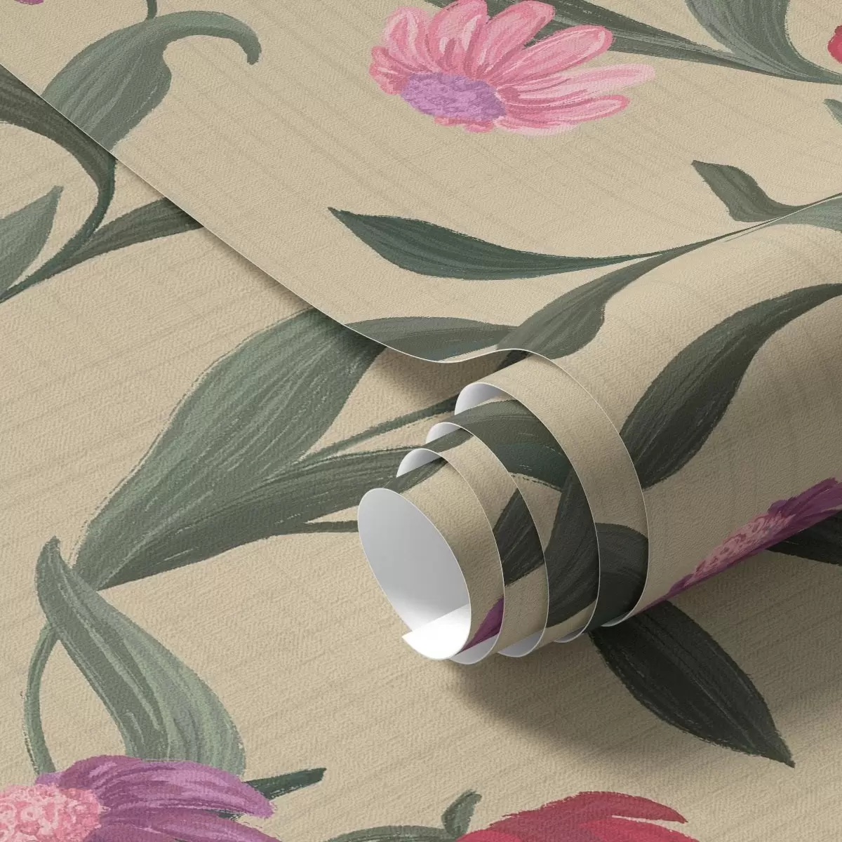 Carta da parati Fiori rosa-rossi su sfondo beige, texture disegnata a mano Nr. a00631