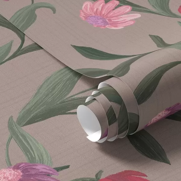 Carta da parati Fiori rosa-rossi su sfondo tortora, steli lunghi Nr. a00631v2