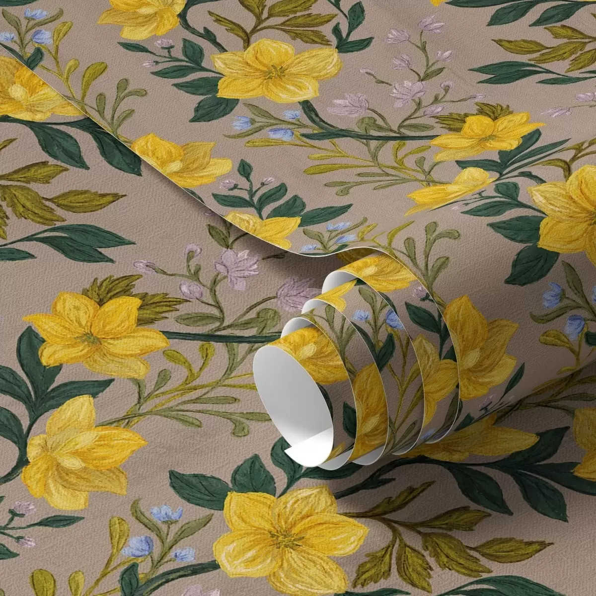 Carta da parati Fiori gialli in ghirlande verticali su sfondo tortora Nr. a00632v1