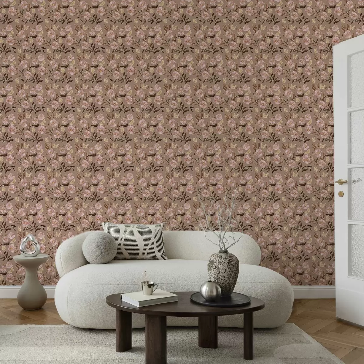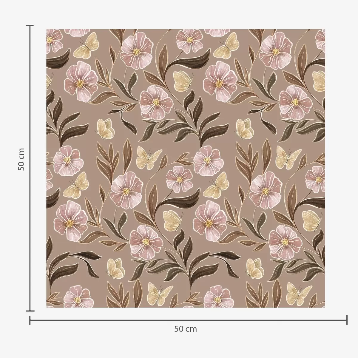 Carta da parati Fiori rosa e farfalle su uno sfondo marrone caldo Nr. a00633v1