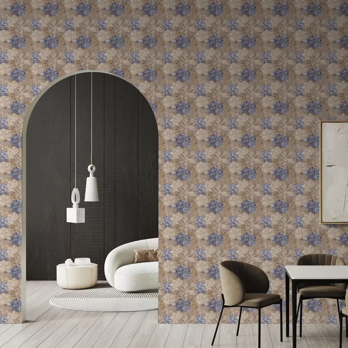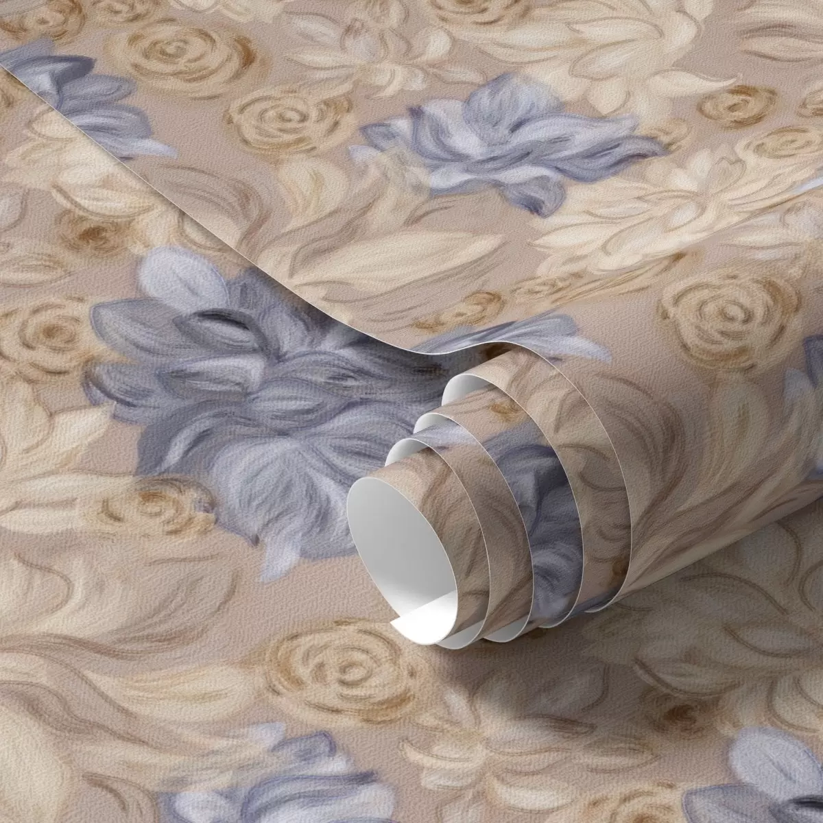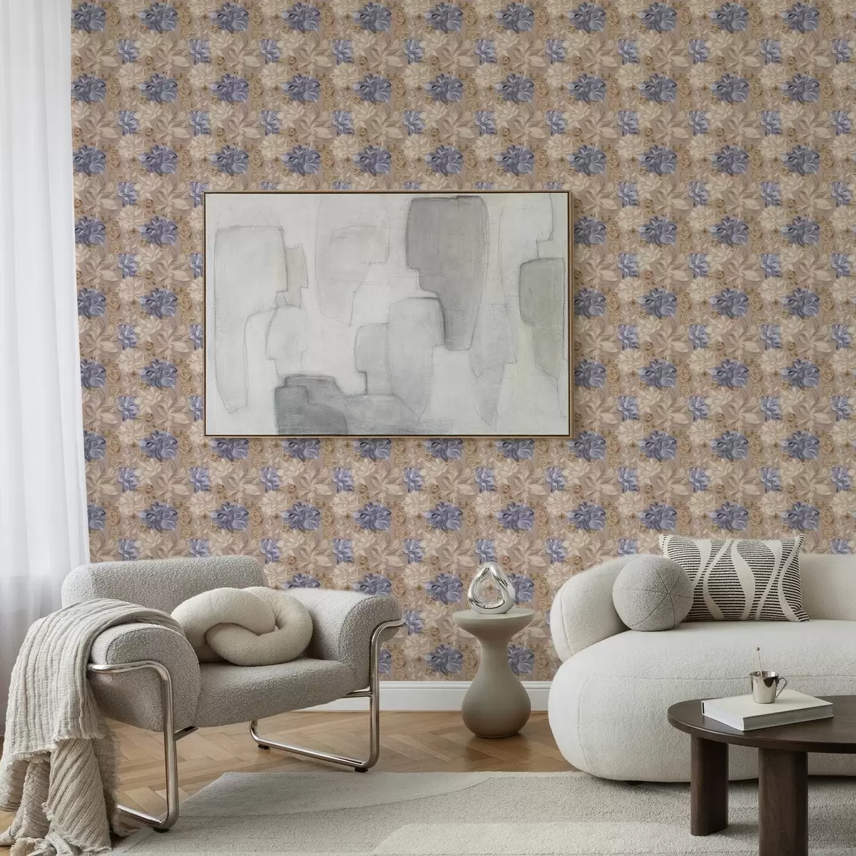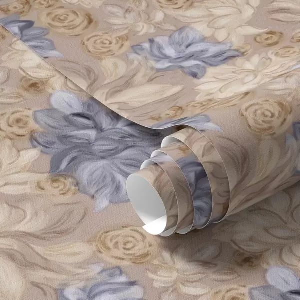 Carta da parati Crema lussureggiante e fiori blu in una palette pastello Nr. a00634