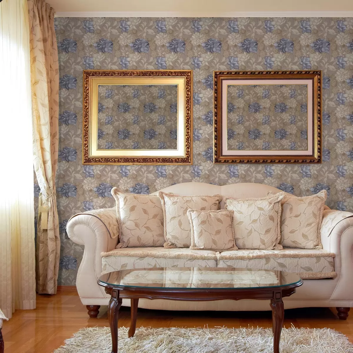 Carta da parati Fiori color crema e blu su uno sfondo beige caldo Nr. a00634v1