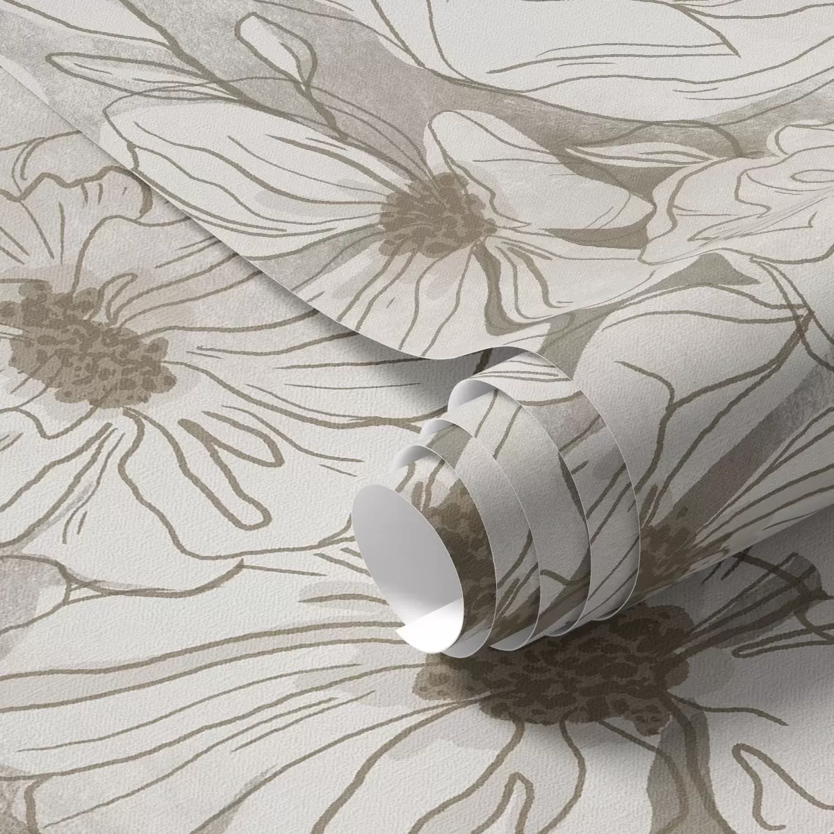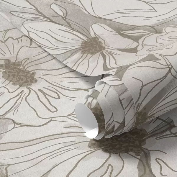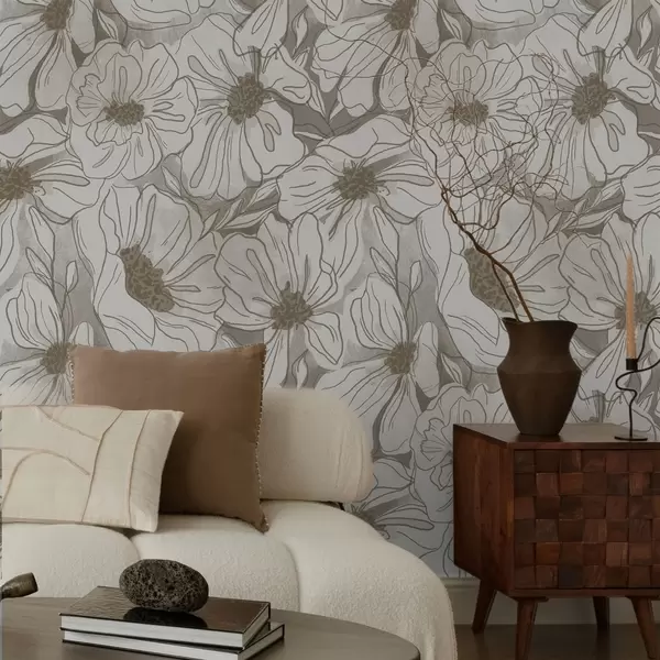 Carta da parati Fiori lineari in una palette monocromatica beige-grigio Nr. a00636