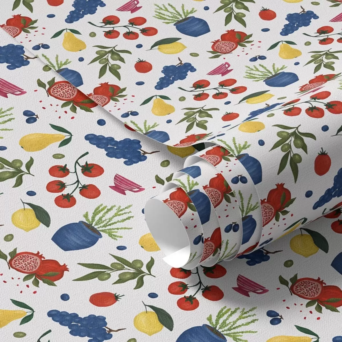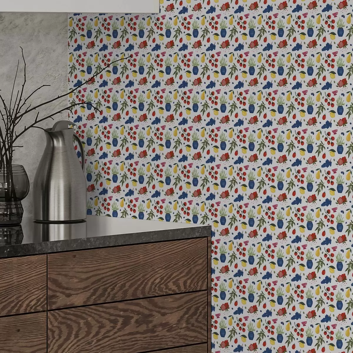Carta da parati Motivo botanico con frutta dai colori vivaci su sfondo bianco Nr. a00637v1