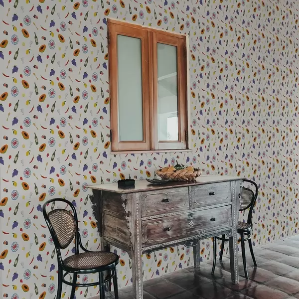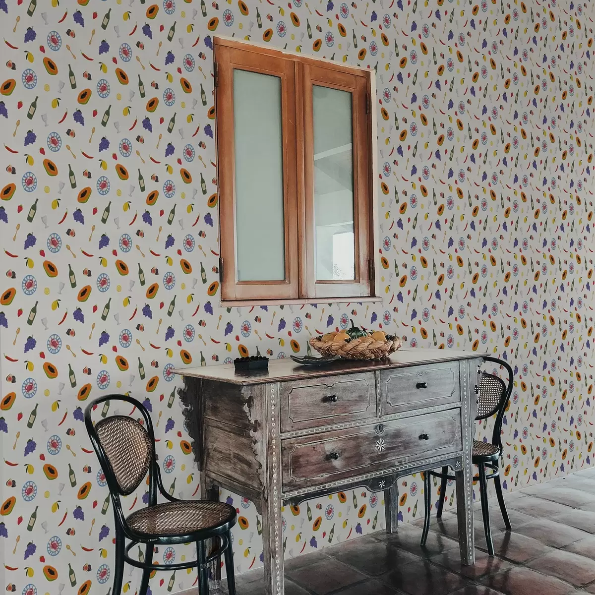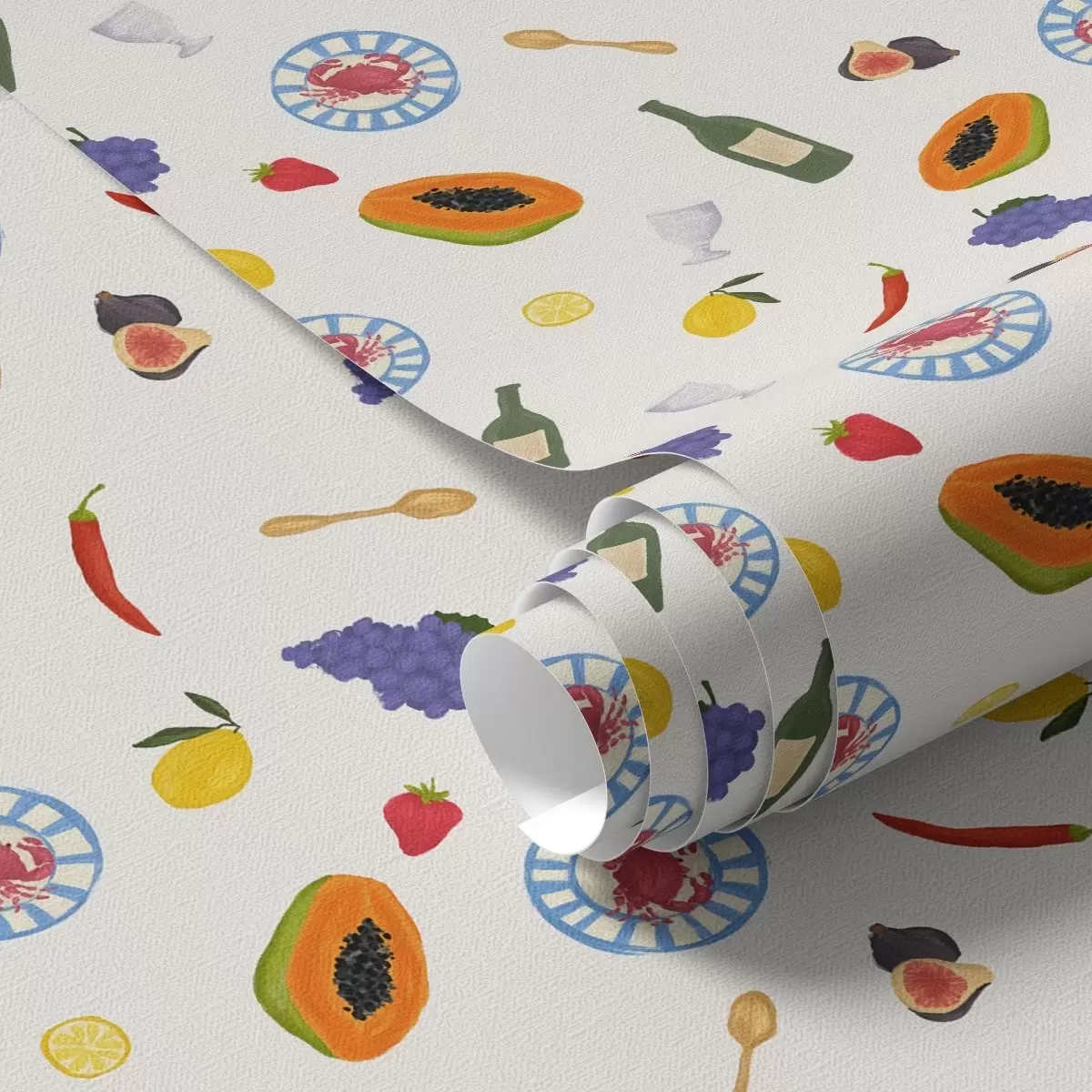 Carta da parati Frutta, vino e spezie disposti su uno sfondo chiaro Nr. a00639