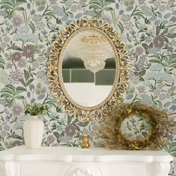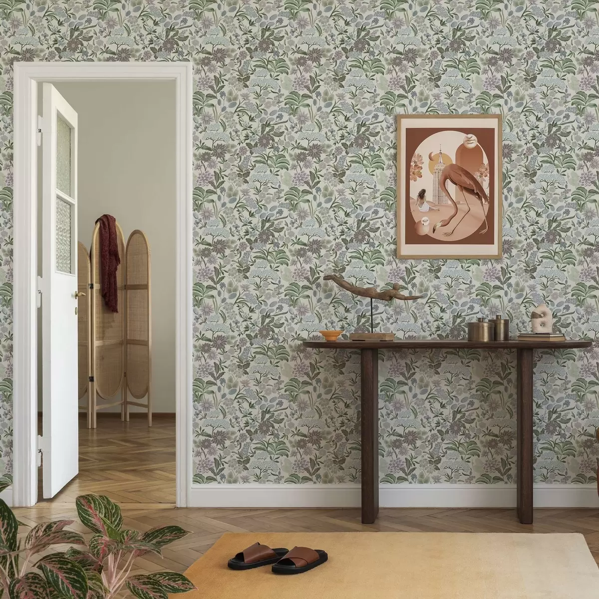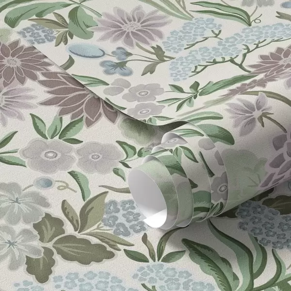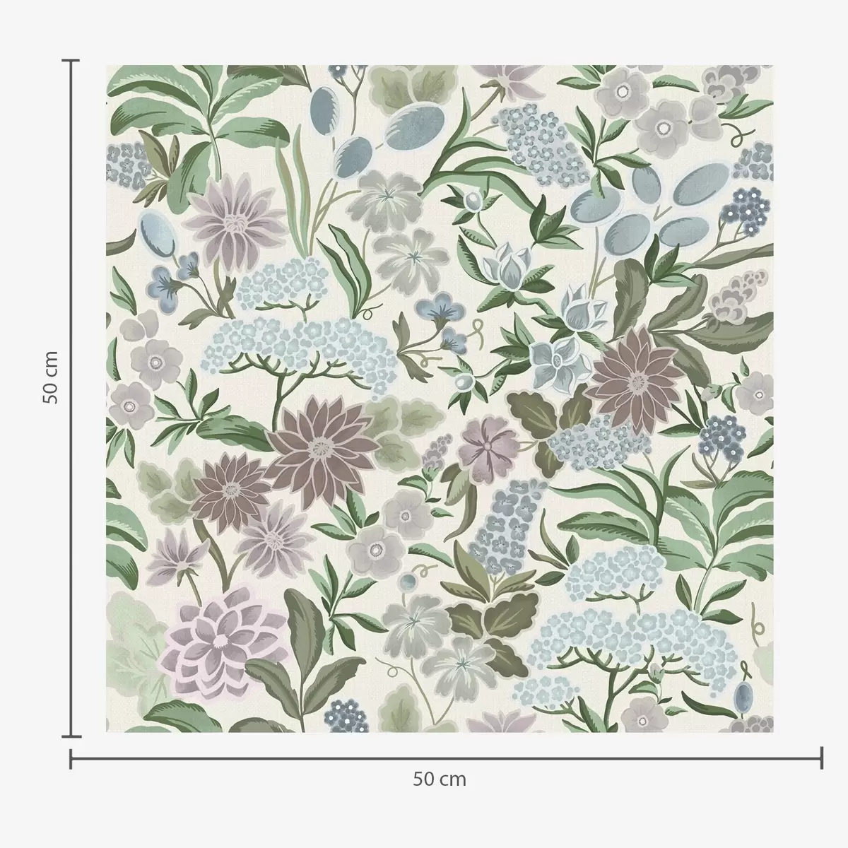 Carta da parati Fiori e foglie dai colori pastello in una palette blu menta Nr. a00642