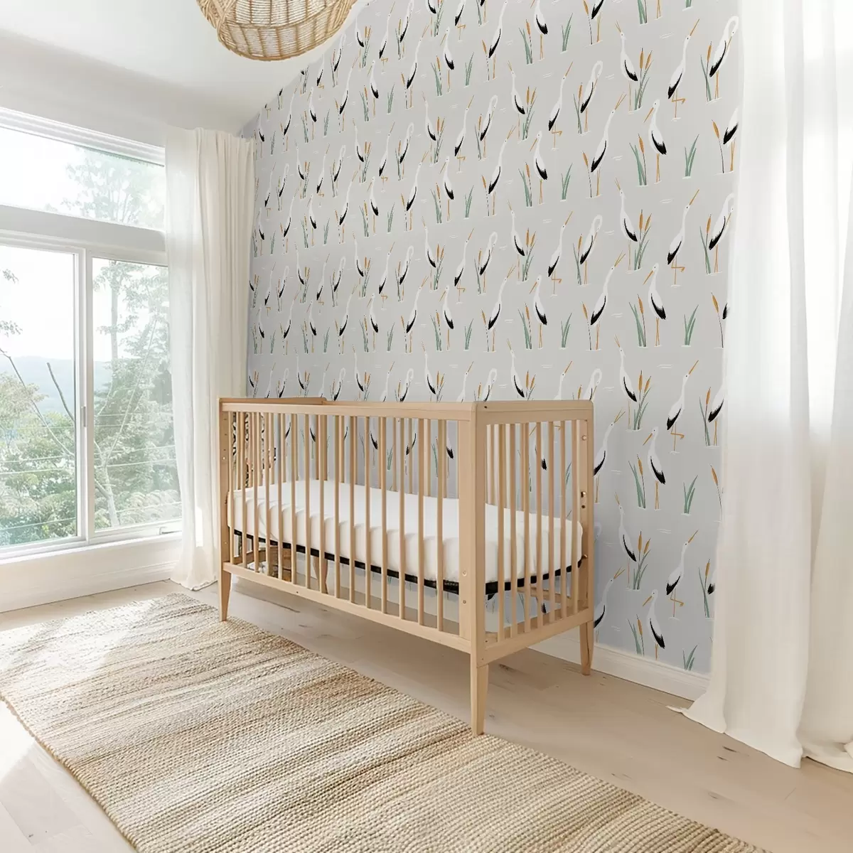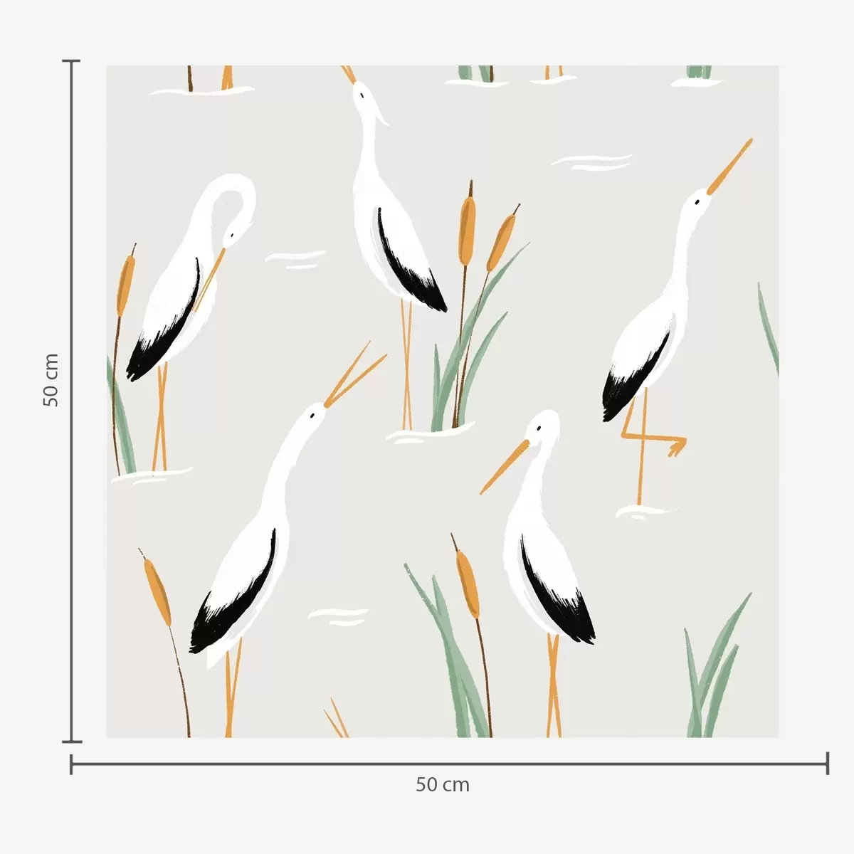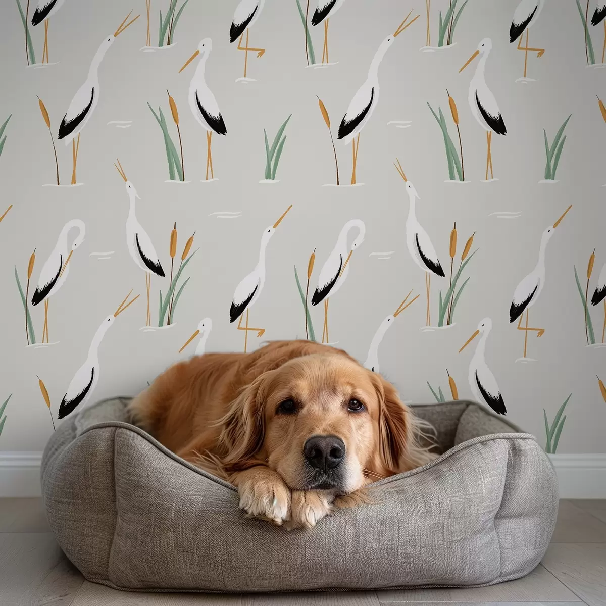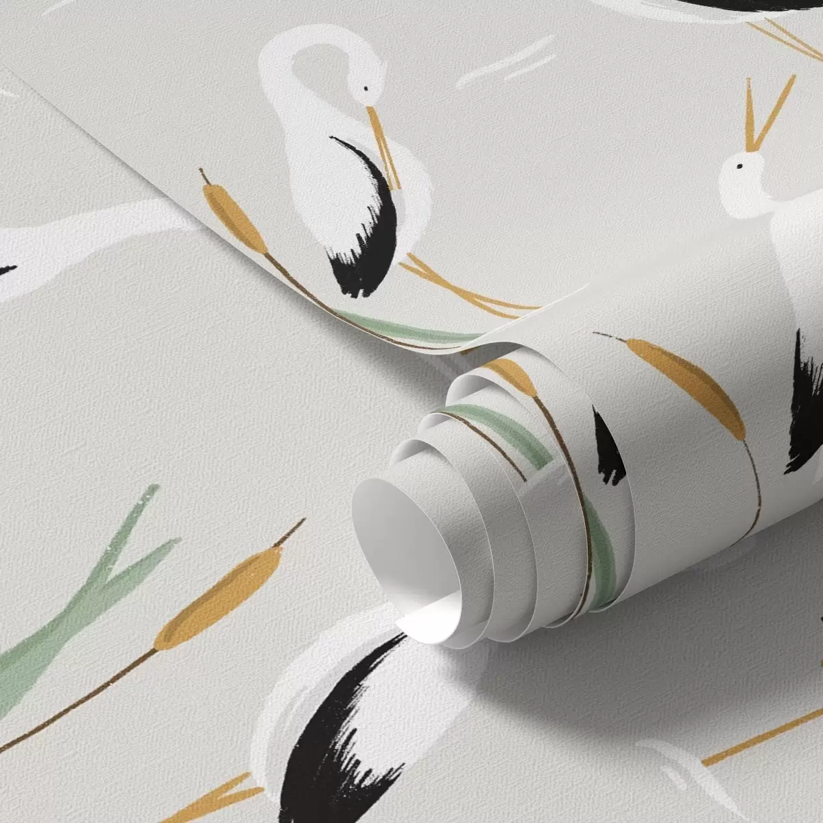 Carta da parati Aironi tra i canneti su sfondo grigio chiaro Nr. a00650