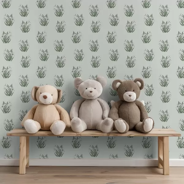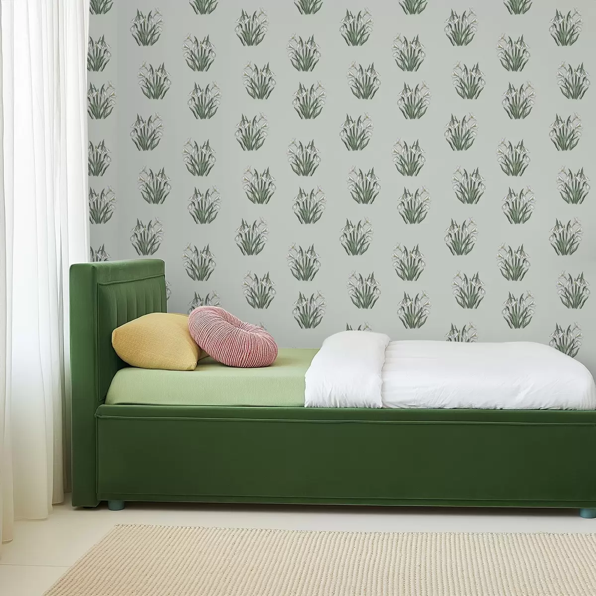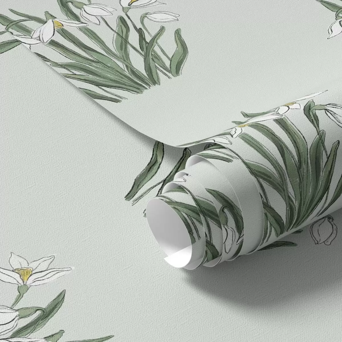 Carta da parati Bucaneve con foglie verdi su sfondo verde pastello Nr. a00651
