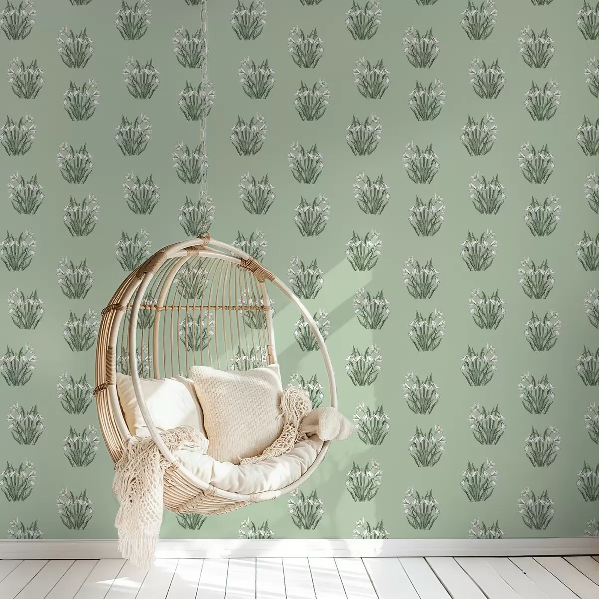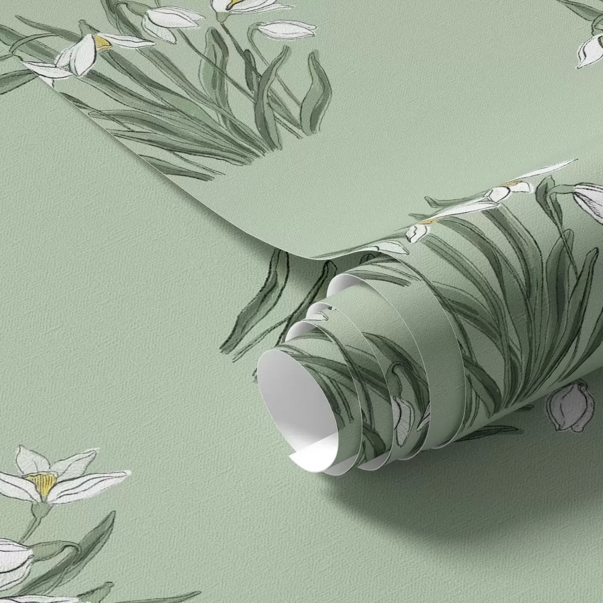 Carta da parati Bucaneve con foglie verdi su uno sfondo verde chiaro Nr. a00651v4