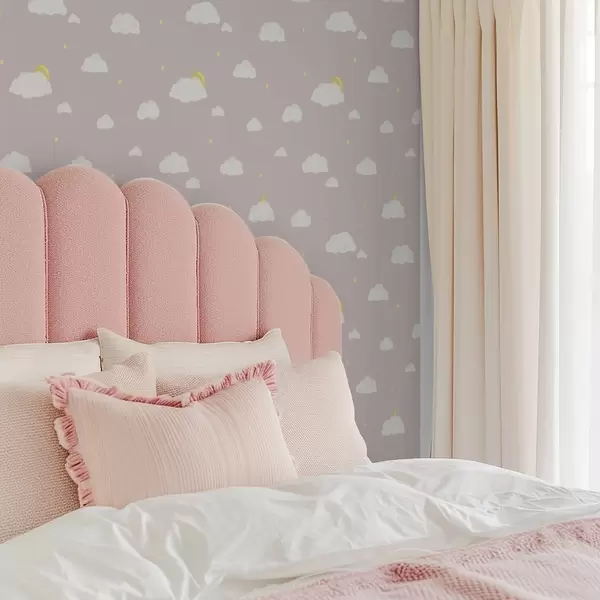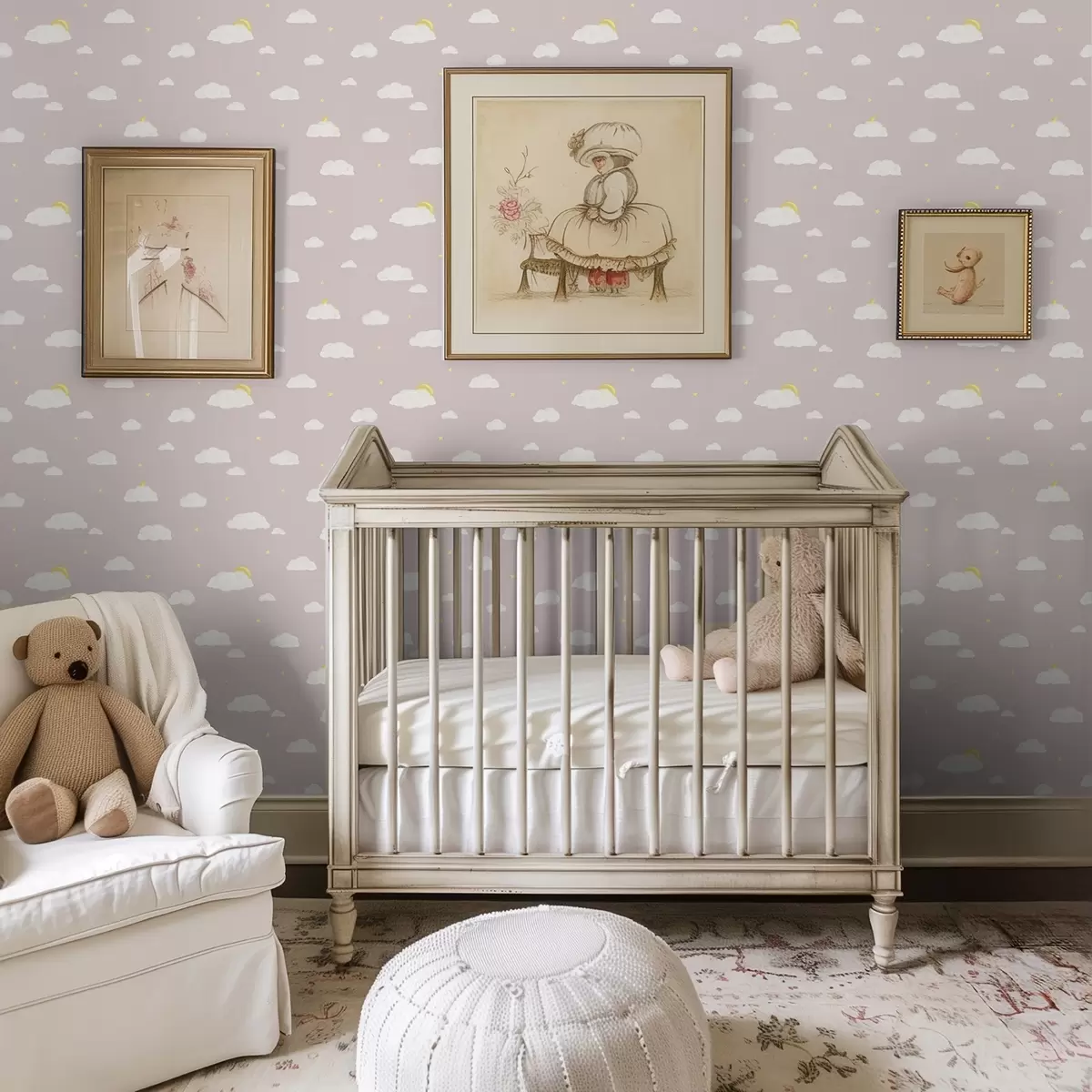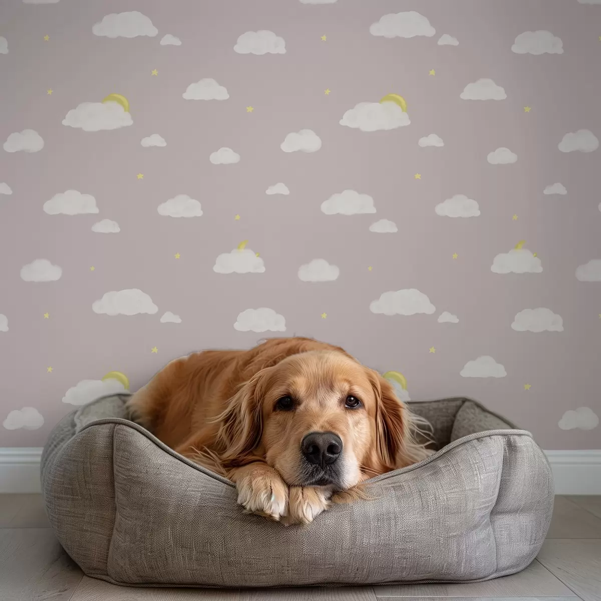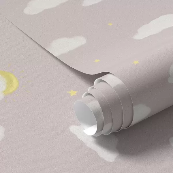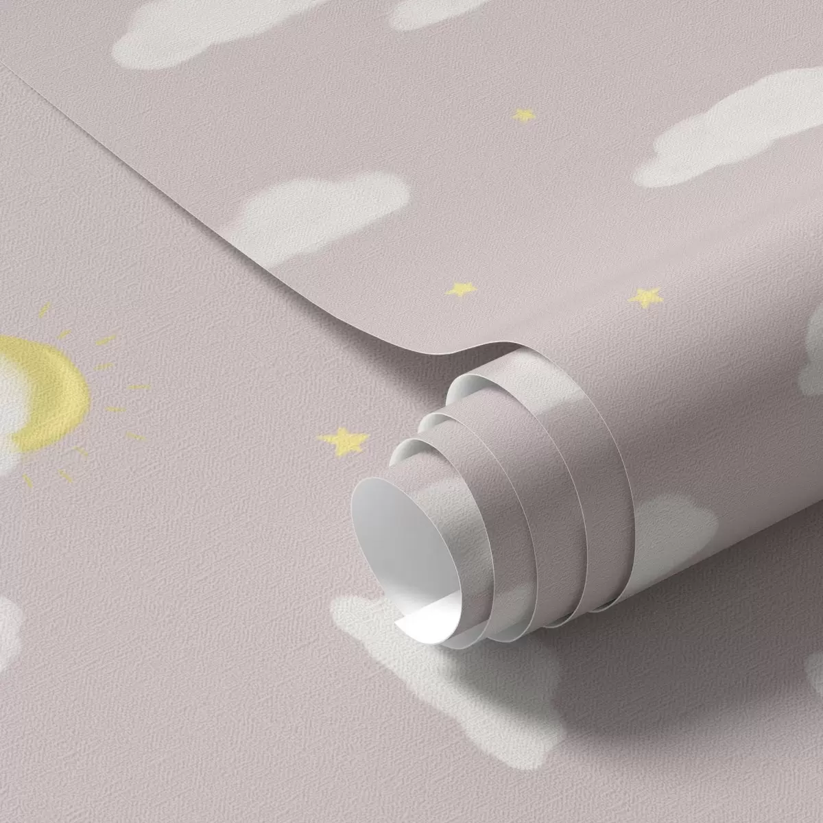 Carta da parati Nuvole morbide, stelle e sole su uno sfondo grigio rosato Nr. a00652v2