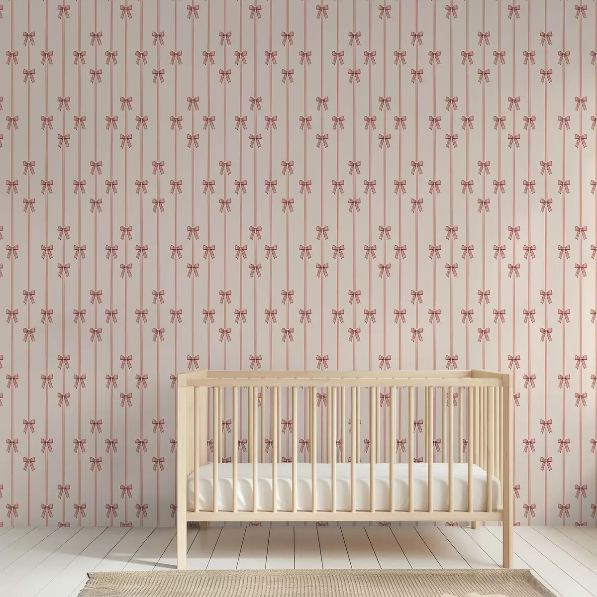 Carta da parati Nastri verticali con fiocchi, sfondo avorio Nr. a00653