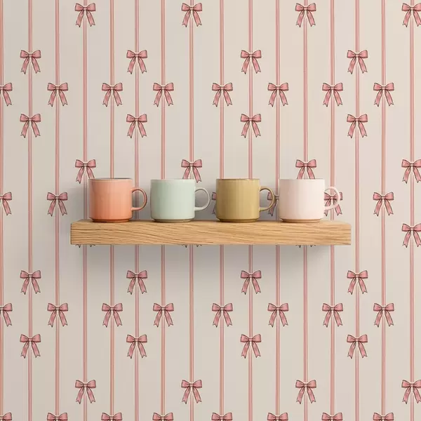 Carta da parati Nastri verticali con fiocchi, sfondo avorio Nr. a00653
