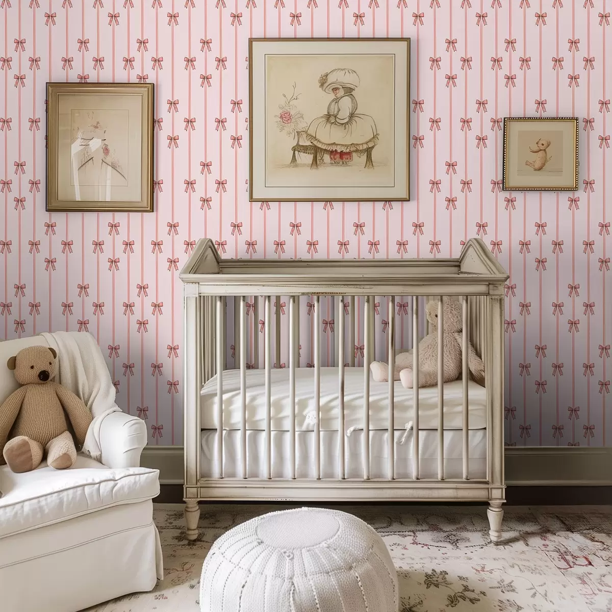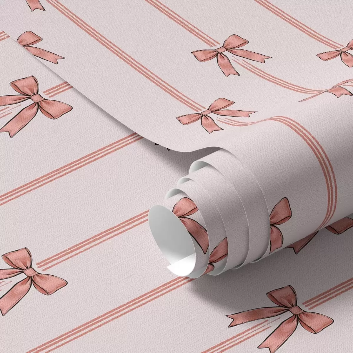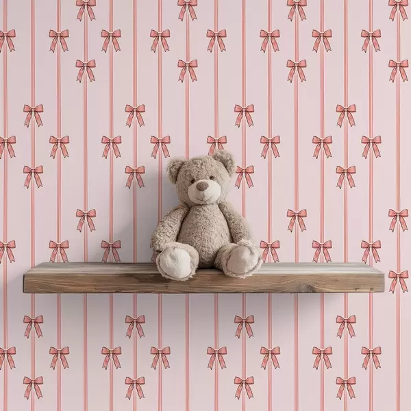Carta da parati Nastri verticali con fiocchi, sfondo rosa cipria Nr. a00653v2