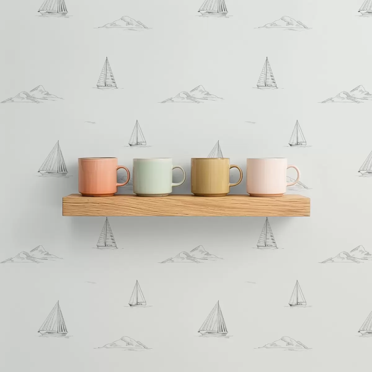 Carta da parati Disegna yacht e isole, sfondo chiaro Nr. a00654v2