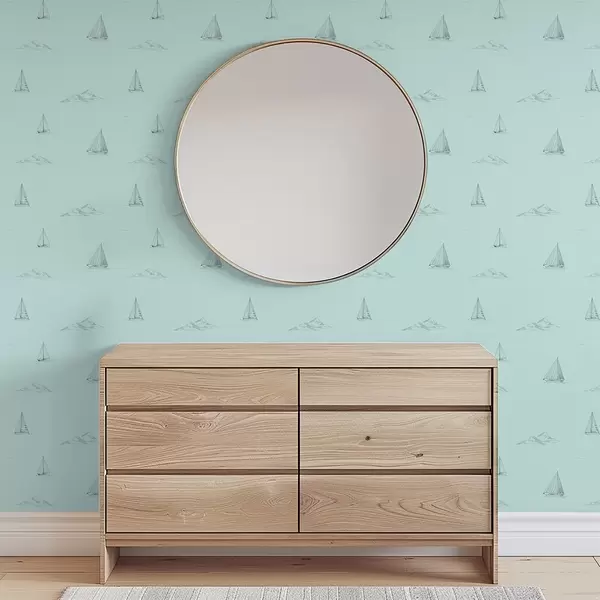 Carta da parati Disegna yacht e isole su sfondo verde menta Nr. a00654v4