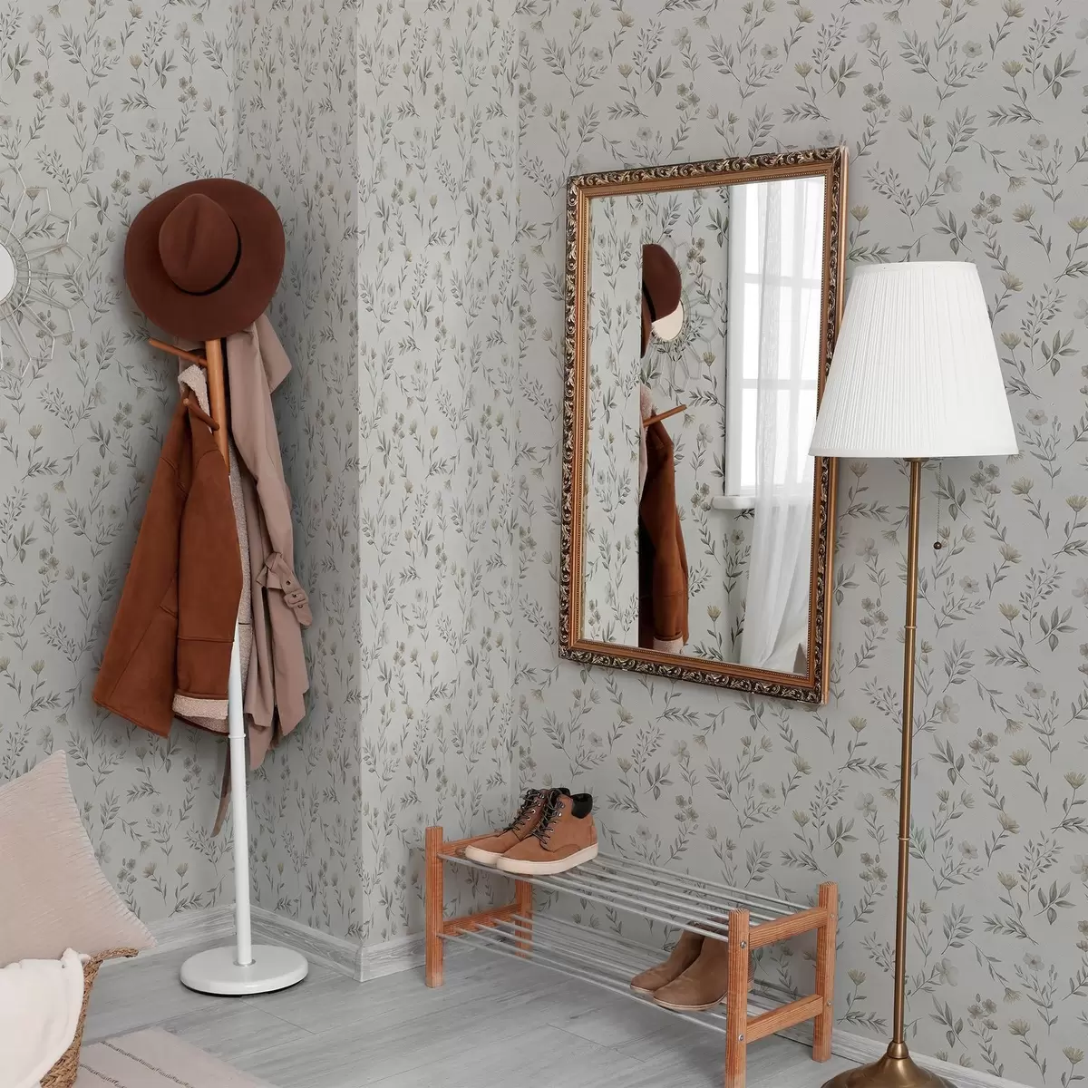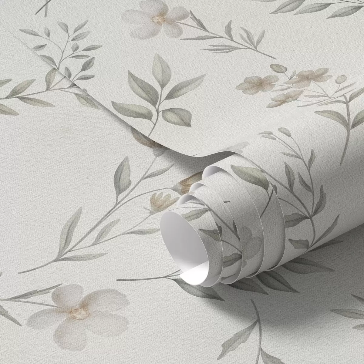 Carta da parati Piccoli ramoscelli e fiori acquerellati su sfondo chiaro Nr. a00665