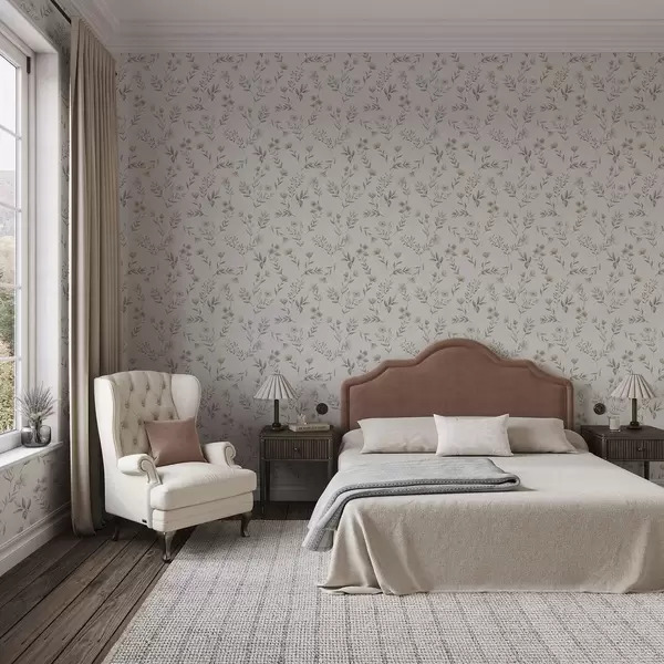 Carta da parati Piccoli ramoscelli e fiori acquerellati su sfondo chiaro Nr. a00665