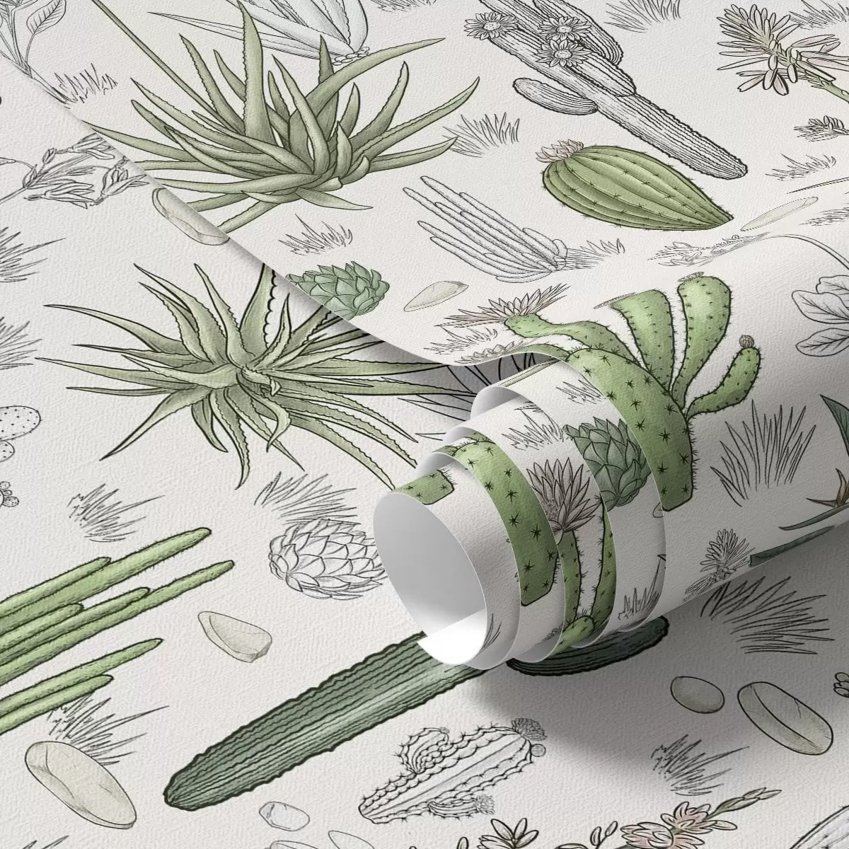 Carta da parati Cactus e piante grasse su sfondo chiaro, stile lineare Nr. a00666v1