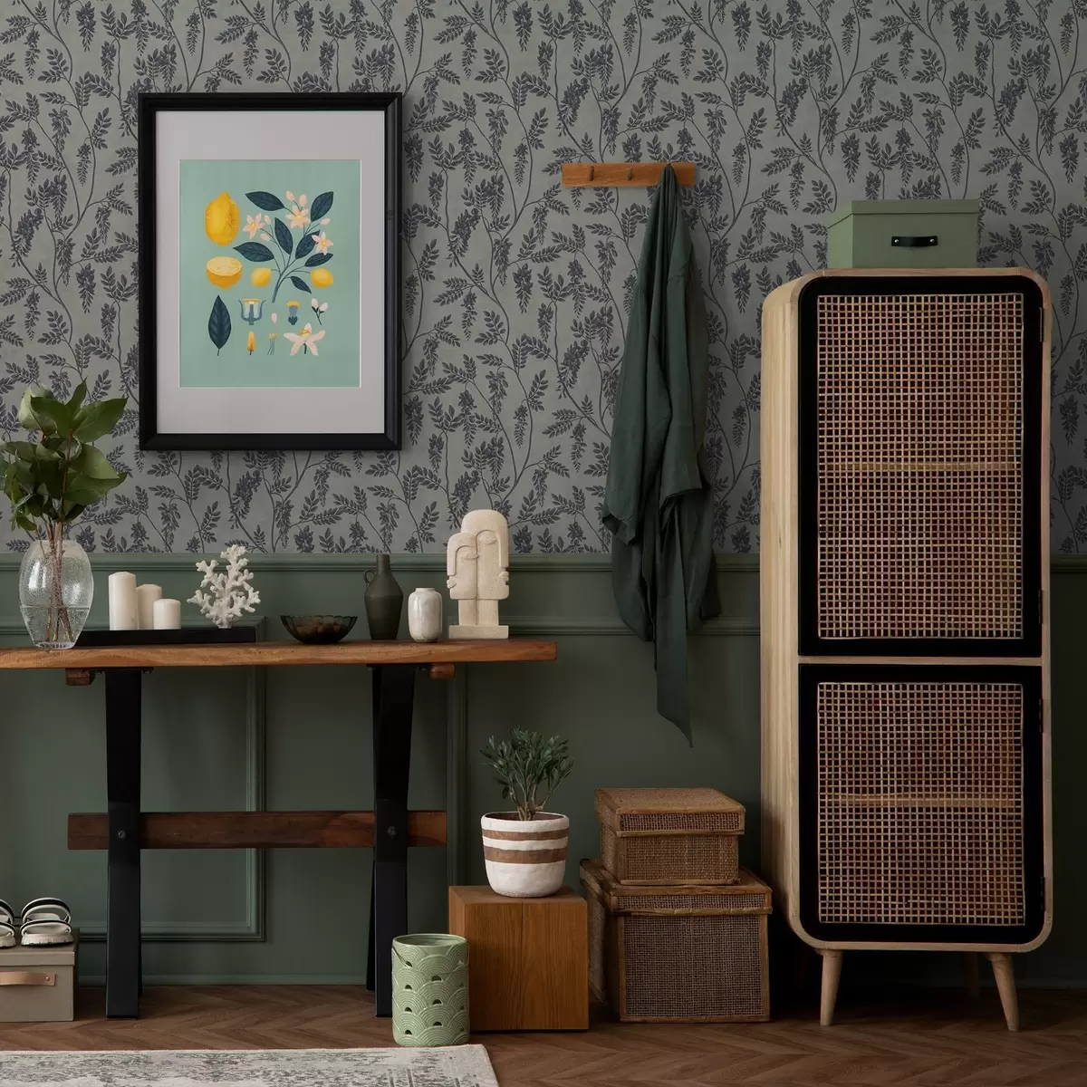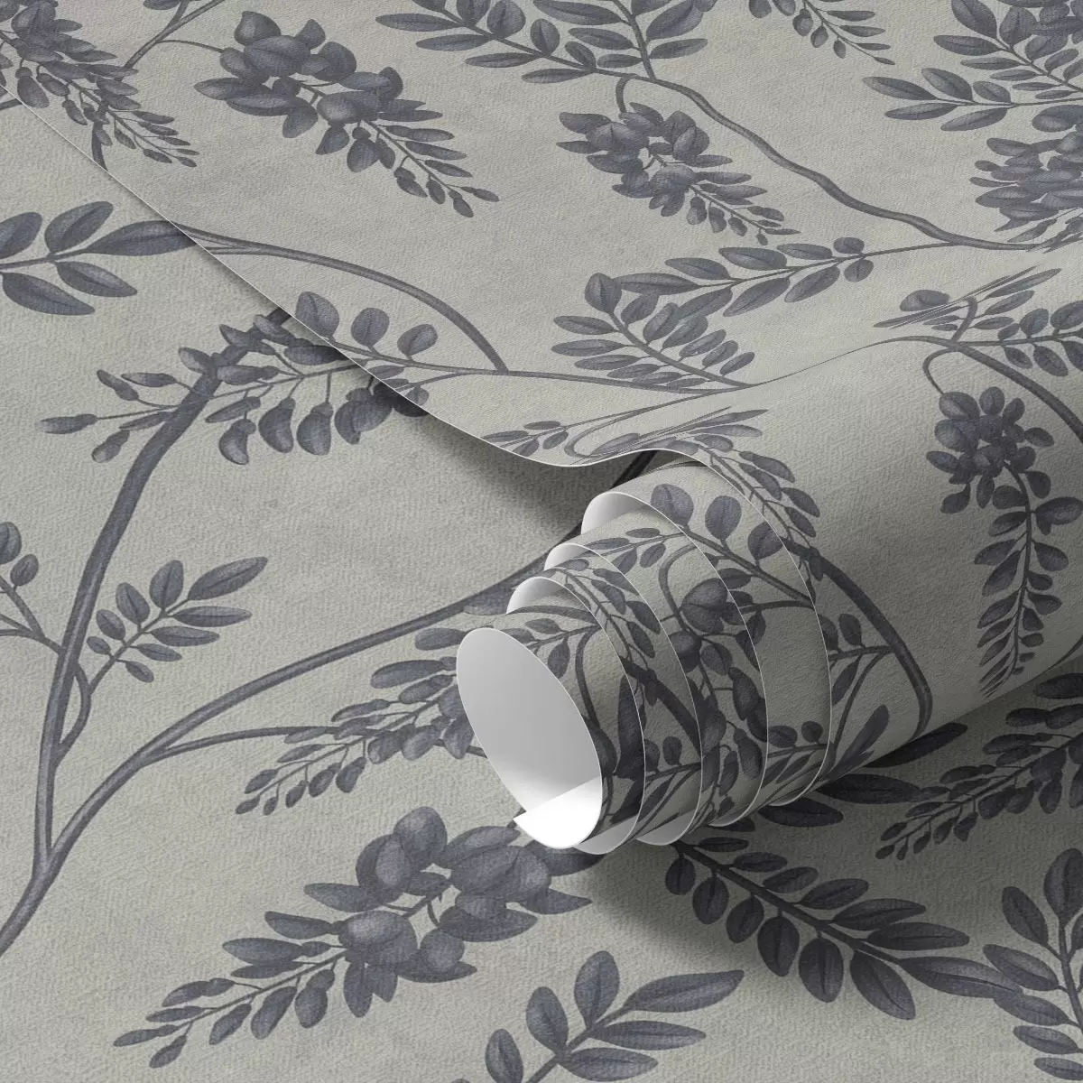 Carta da parati Rami con fiori scuri su sfondo grigio-beige Nr. a00672
