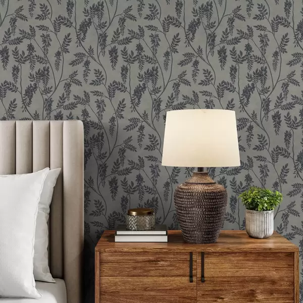 Carta da parati Rami con fiori scuri su sfondo grigio-beige Nr. a00672