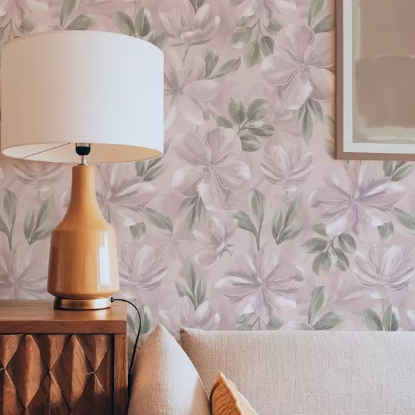 Carta da parati Fiori rosa con foglie delicate su uno sfondo morbido Nr. a00675